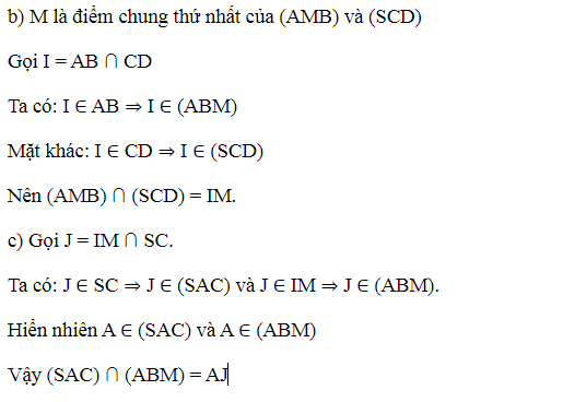 Ta có: J ∈ SC ⇒ J ∈ (SAC) và J ∈ IM ⇒ J ∈ (ABM).