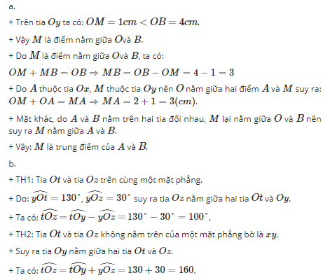 b. Từ O kẻ hai tia Ot và Oz sao cho: tOy= 130°, zOy= 30°. Tính số đó tOz.
