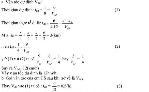 b) Để đến trường đúng thời gian dự định thì khi quay về và đi lần 2 em phải đi với vận tốc bao nhiêu ?