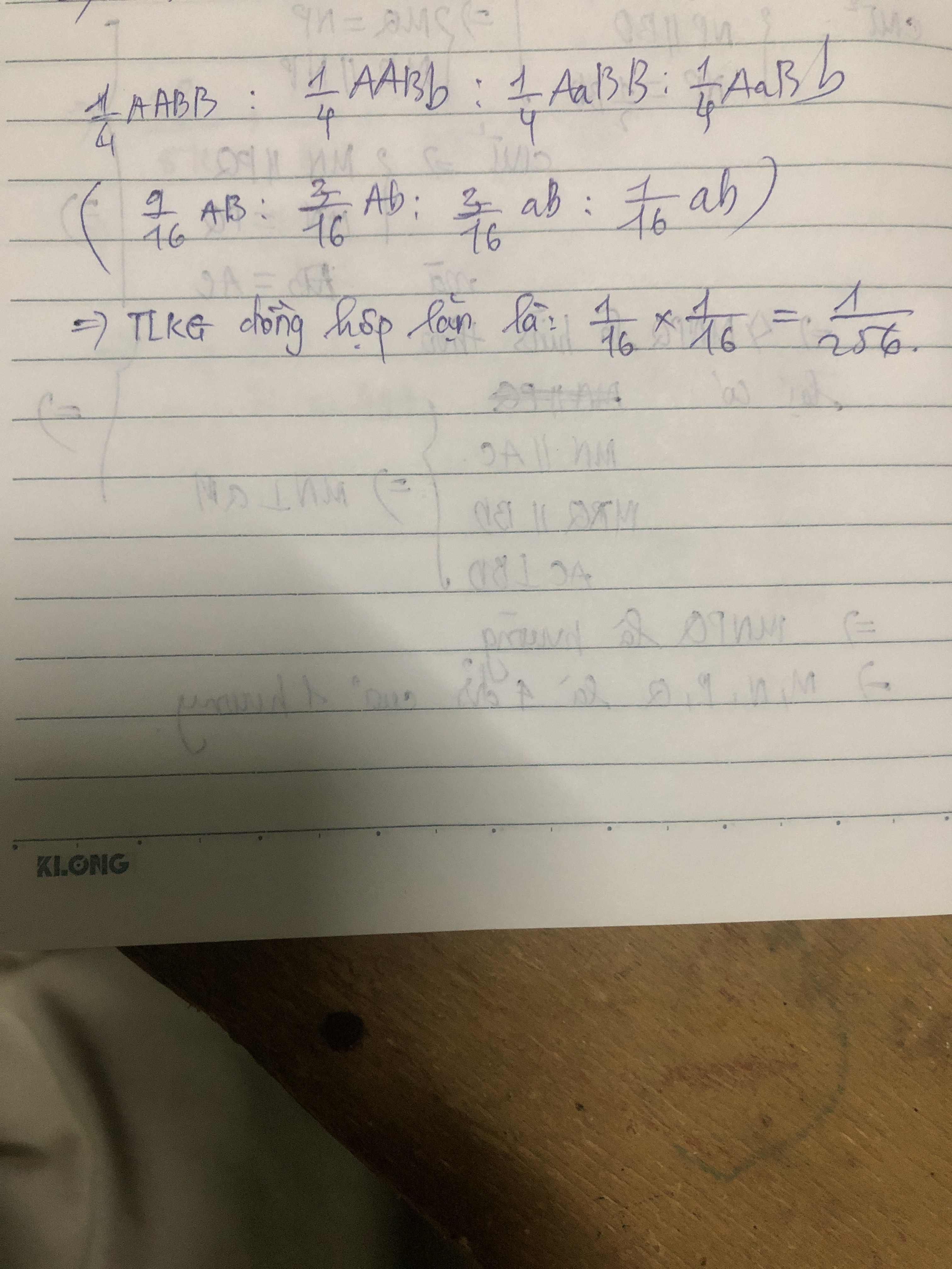 Cho 1 nhóm kiểu gen có tỉ lệ 1/4 AABB ; 1/4AAABb;1/4AaBB;1/4AaBb tiến hành giao phối ngẫu nhiên . Tỉ lệ gen đồng hợp lặn ở tỉ lệ con là bao nhiêu