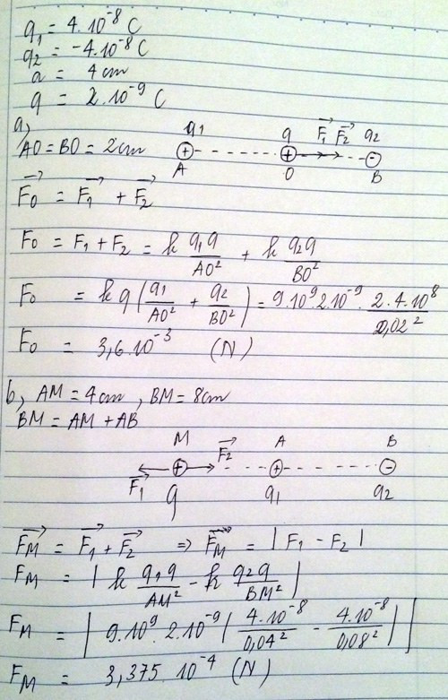 Bài 2: Cho hai điện tích q1 = 4.10-8 C và q2 = - 16.10-8 C đặt tại hai điểm AB cách nhau 12 cm trong không khí.