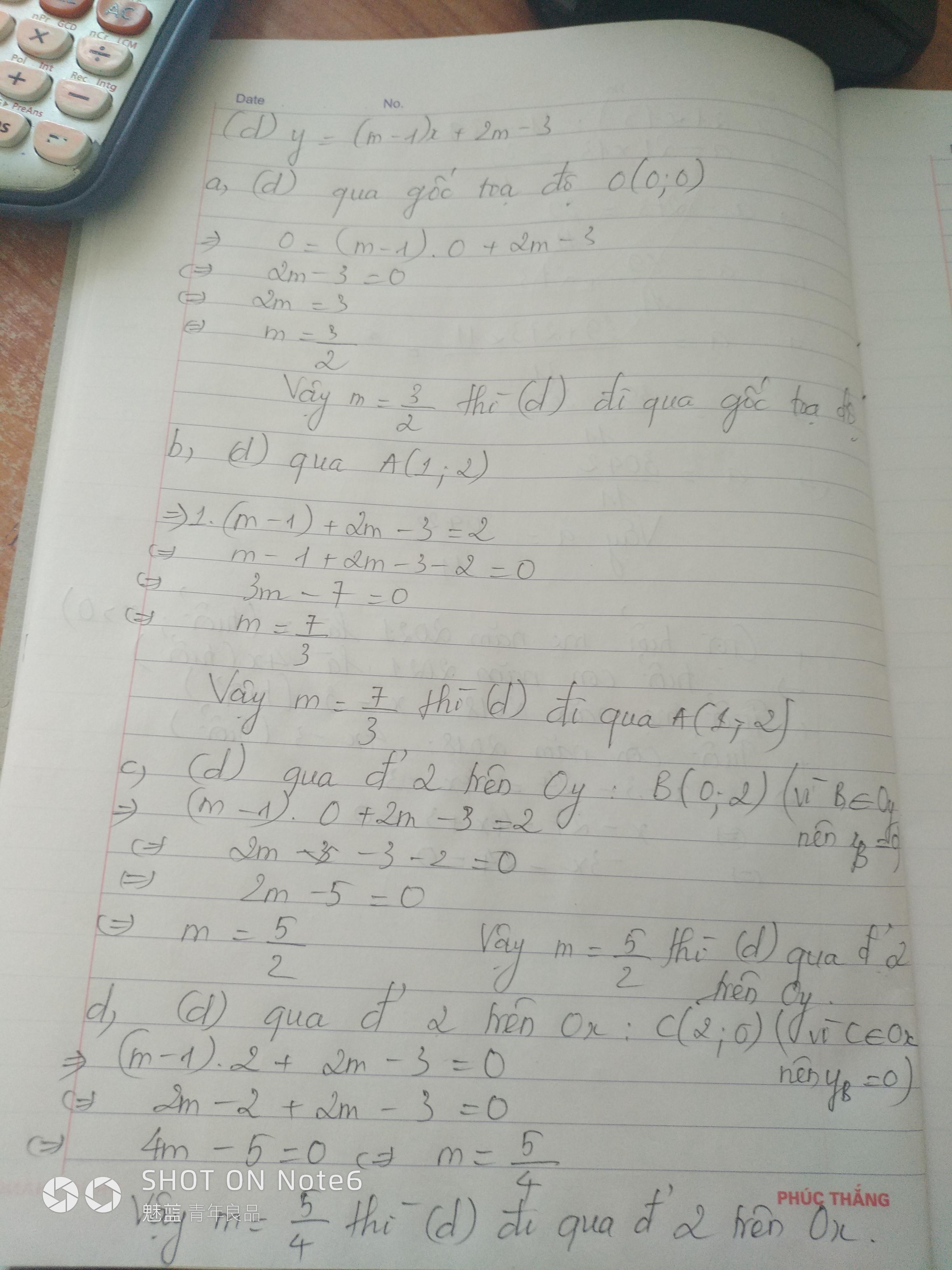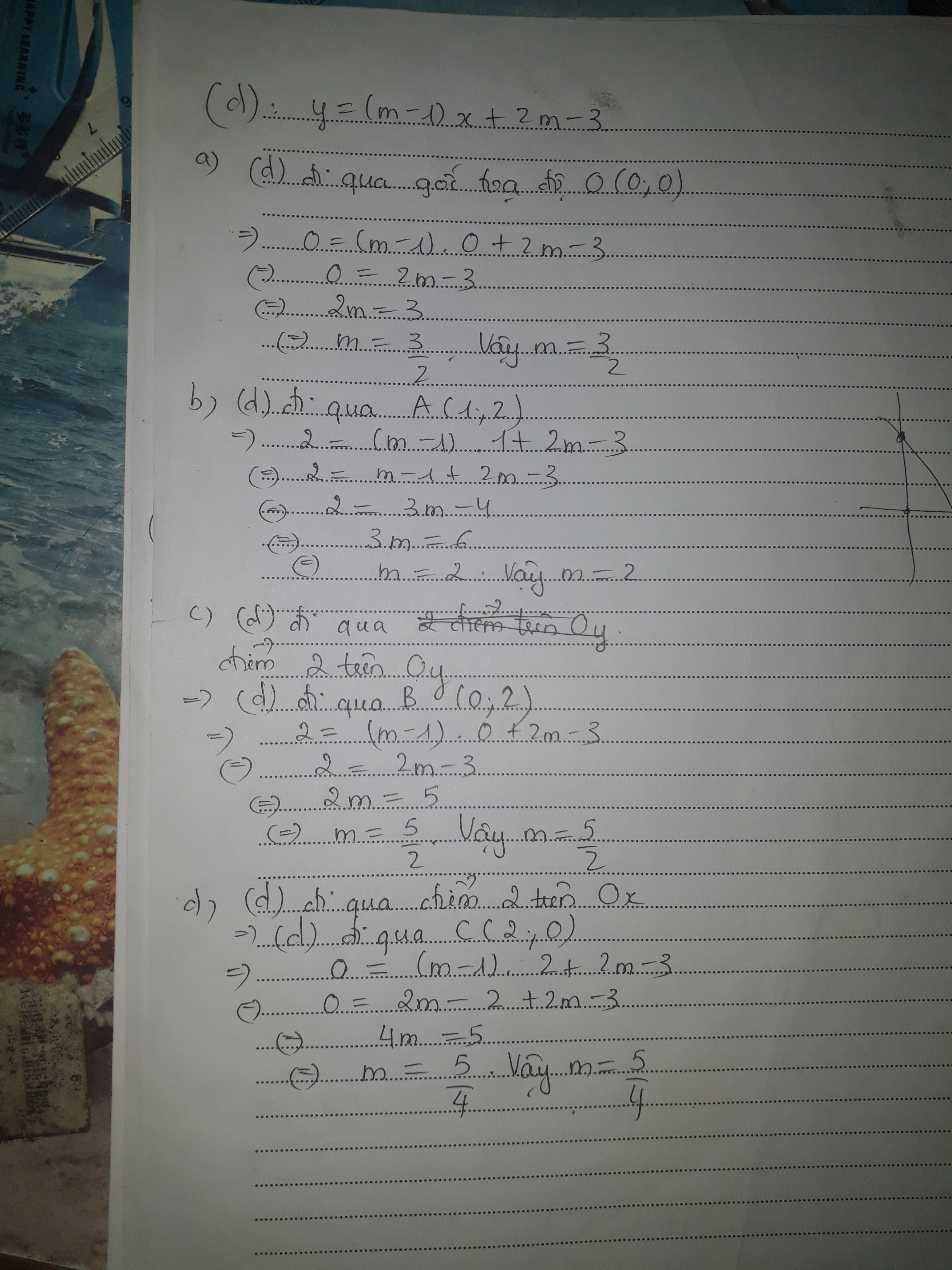 d,(d) đi qua điểm 2 trên Ox