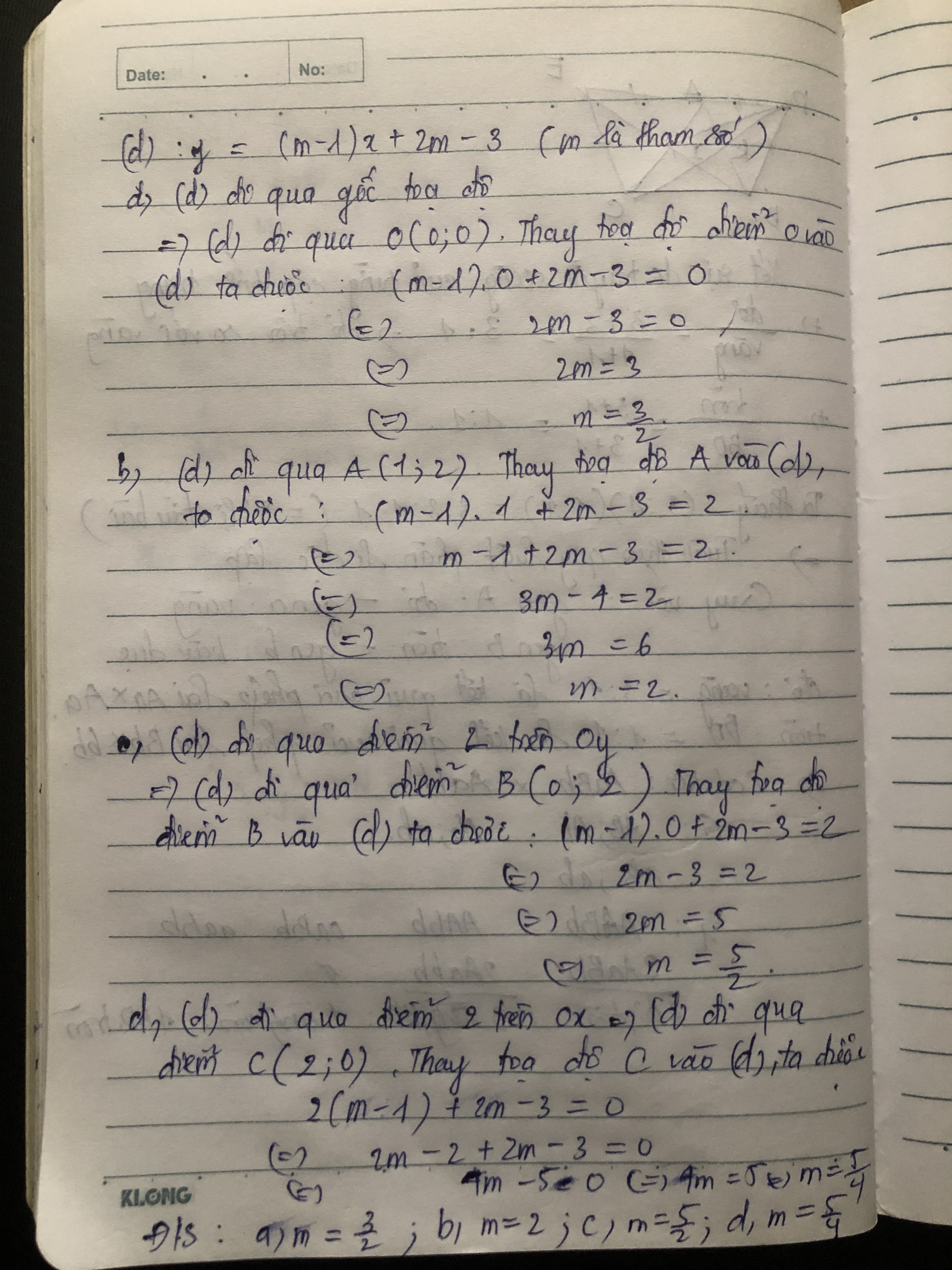 b,(d) đi qua điểm A có toạ độ (1,2)