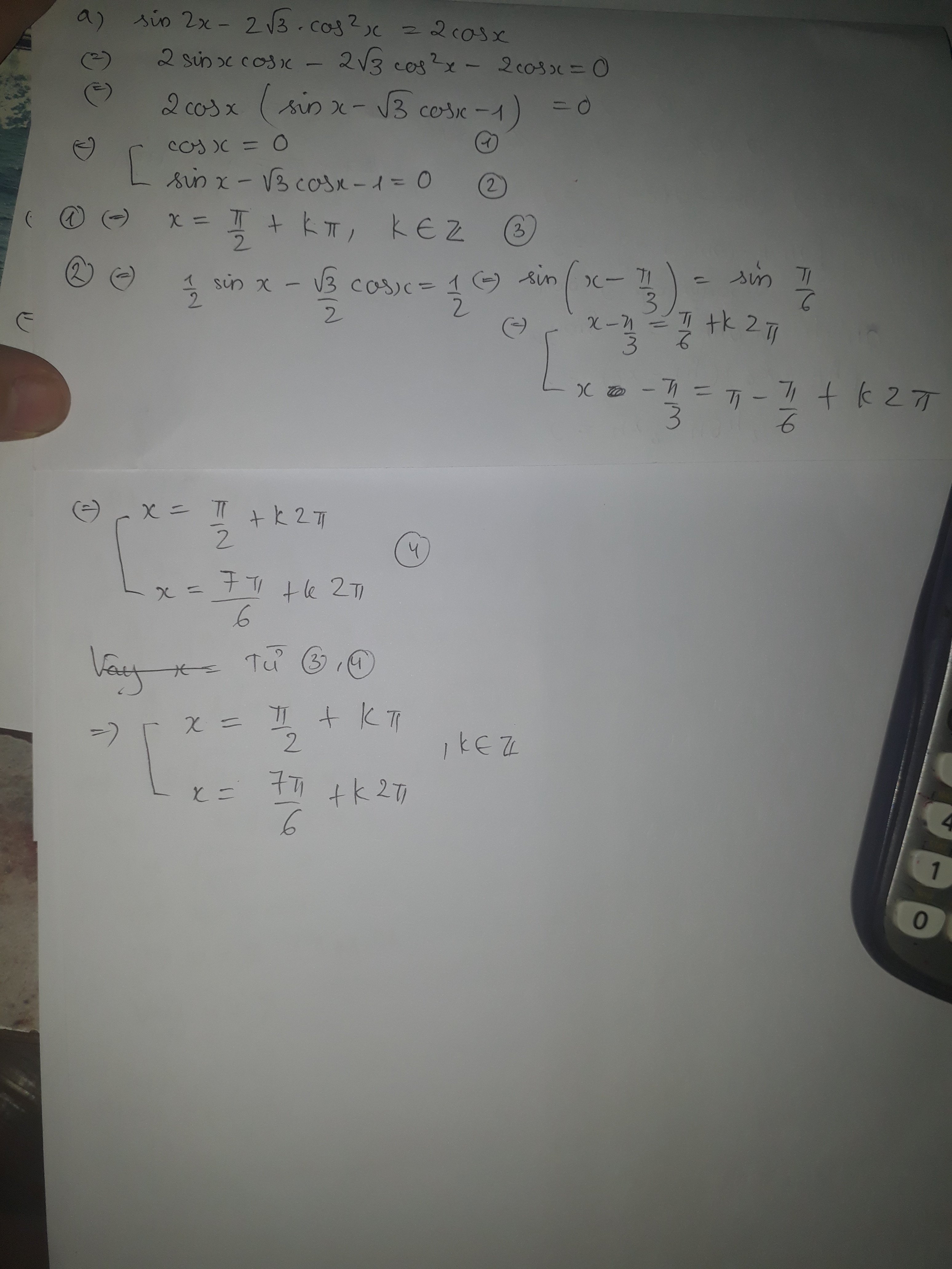 a. sin2x -2 căn 3cos^2x =2 cosx