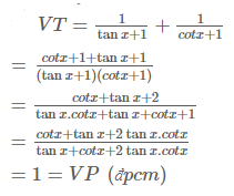 Chứng minh 1/ 1+ tan +1/ 1 +cot=1