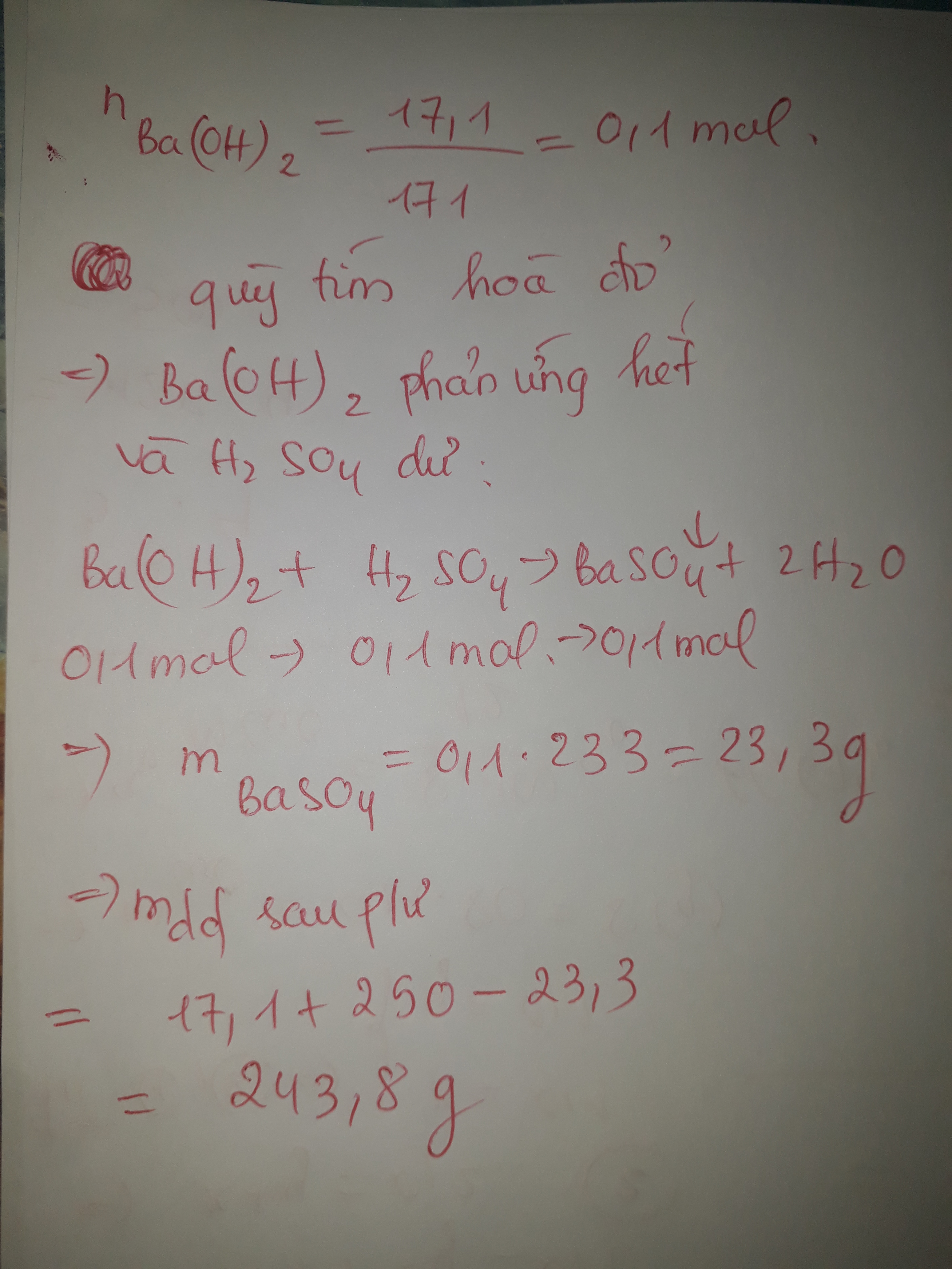 =>Khối lượng dd sau pư=17,1+250-23,3=243,8 (g)