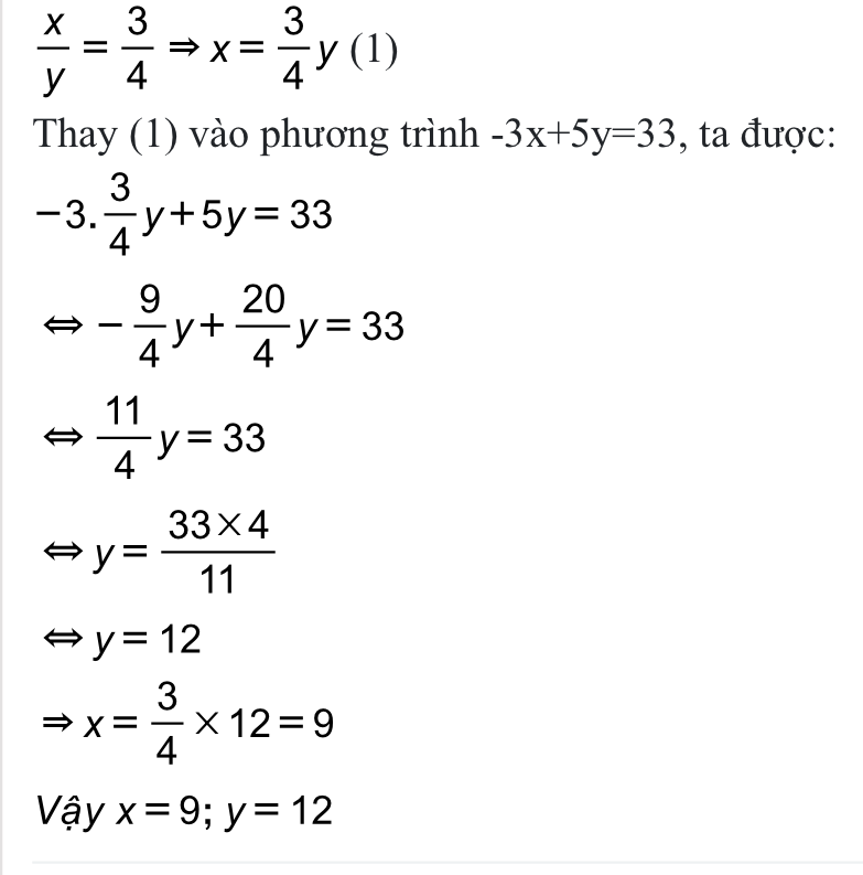 Thay vào -3x+5y =33 ta được: