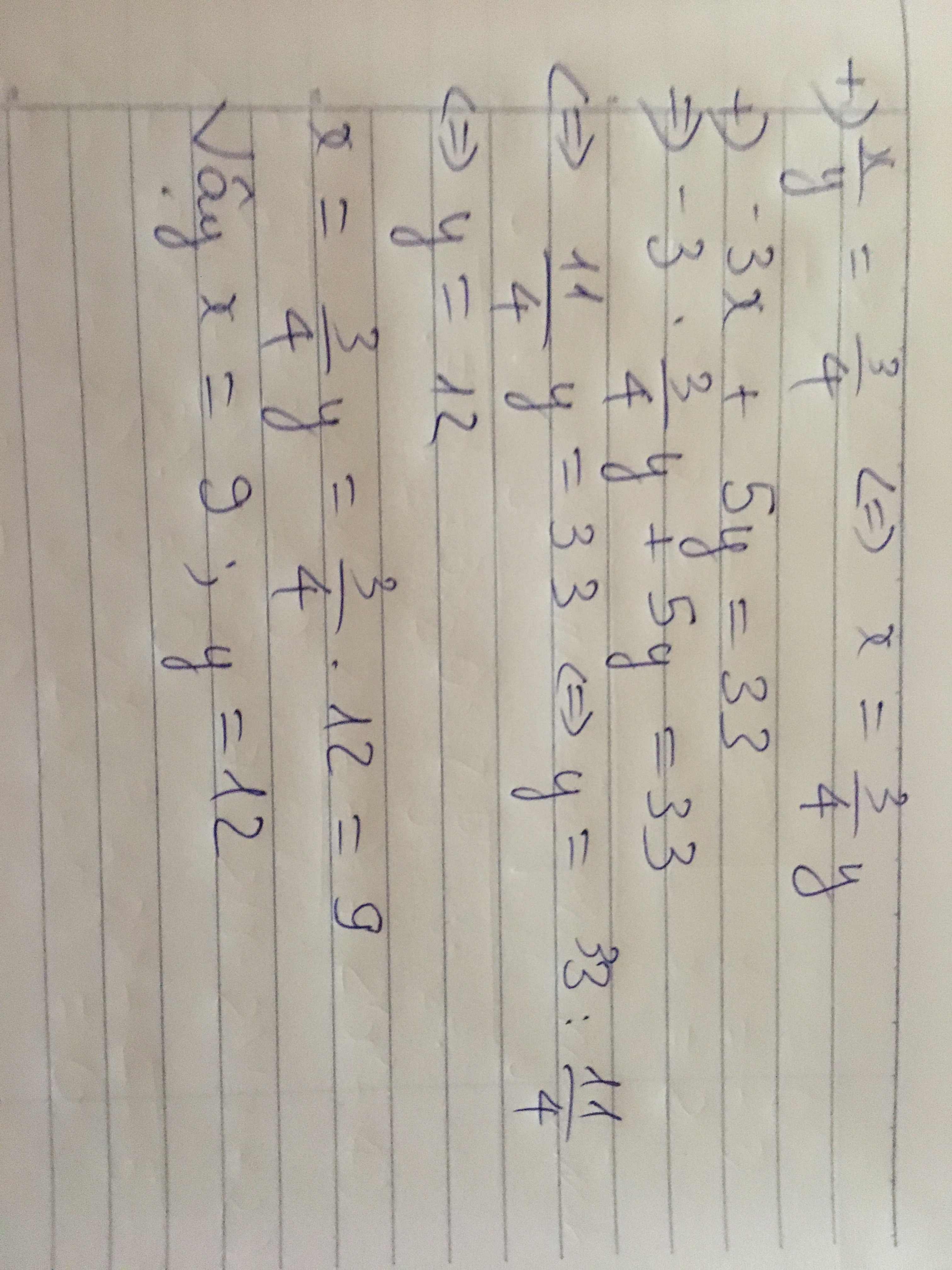 --> x= 3y/4= 3x12/4=9