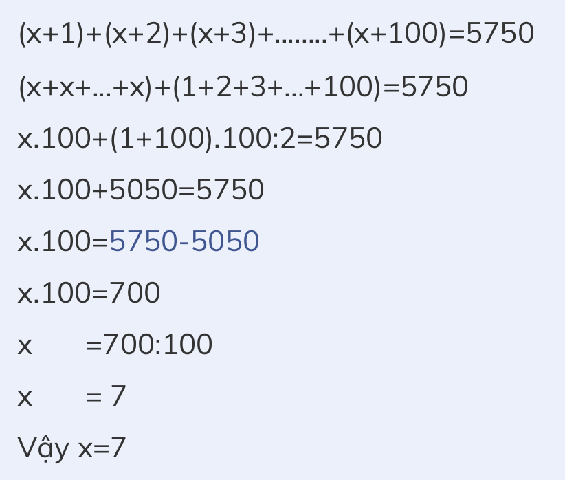 => 100x + (1 + 2 + 3 + ... + 100) = 5750