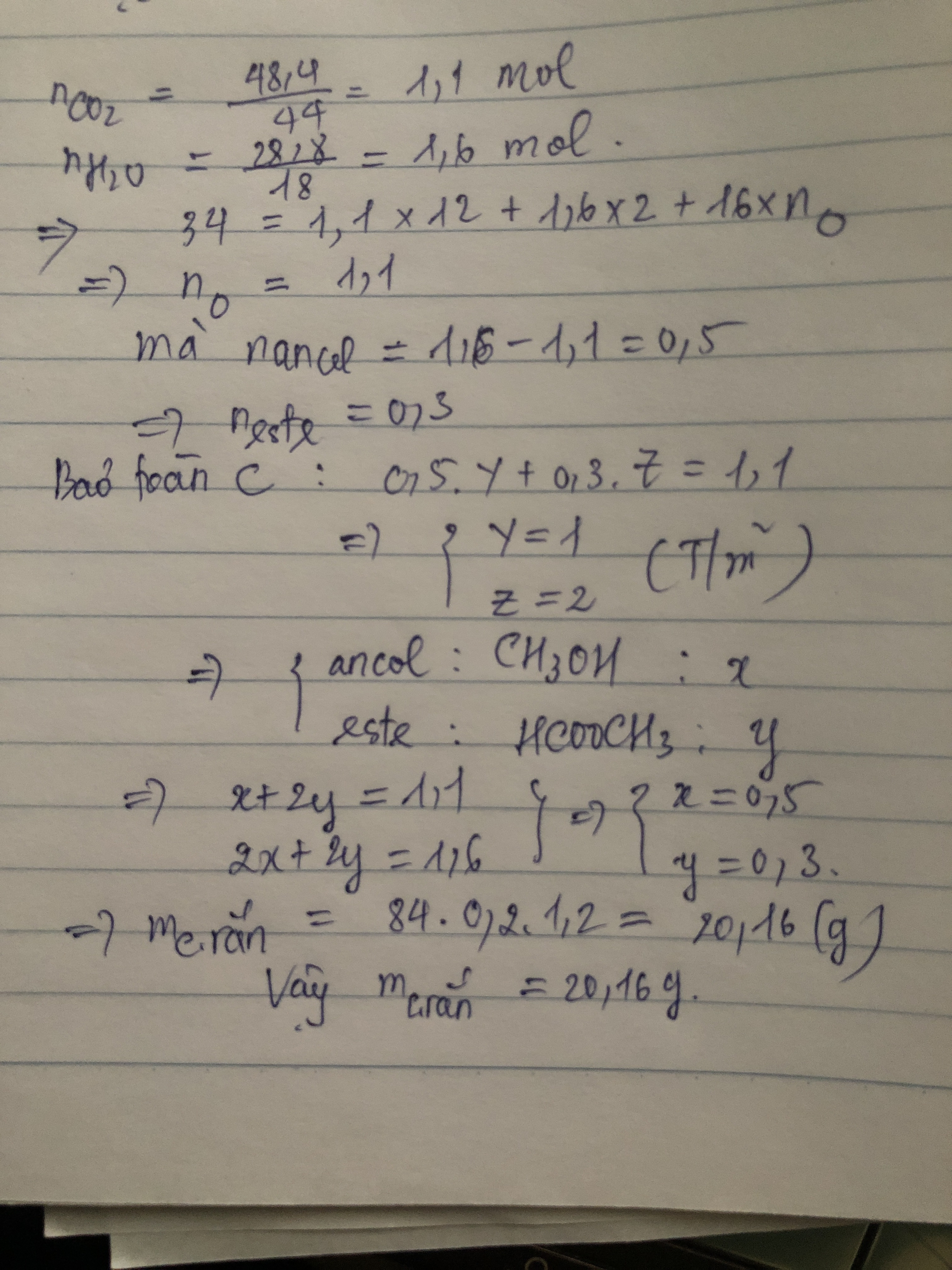 =>CH3OH 0,5 mol và HCOOCH3 0,3 mol