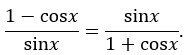 \frac{{1 - \cos x}}{{\sin x}} = \frac{{sinx}}{{1 + \cos x}}\\