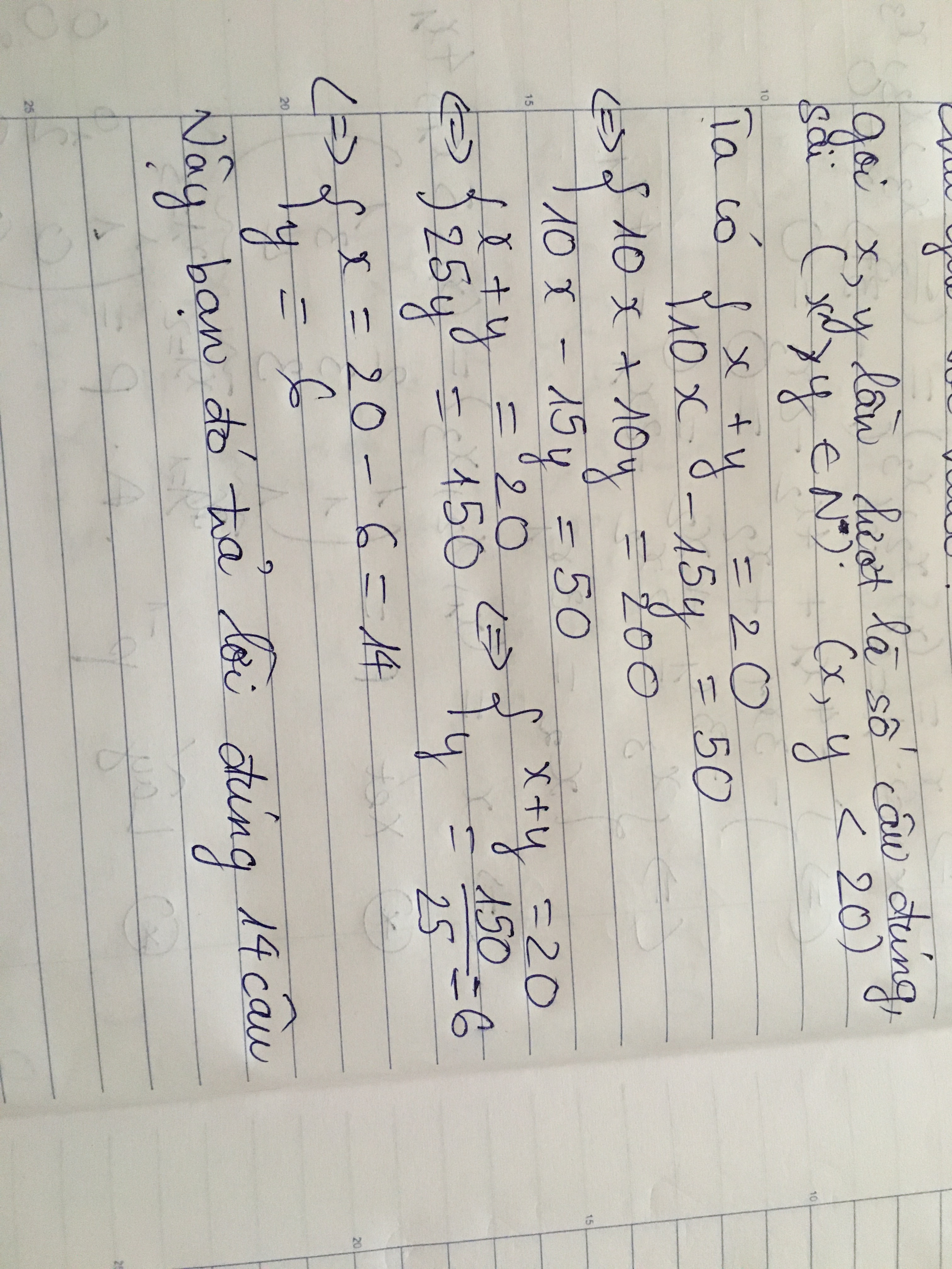 giả sử hs đó trả lời đúng tất cả 20 câu thì số điểm sẽ là