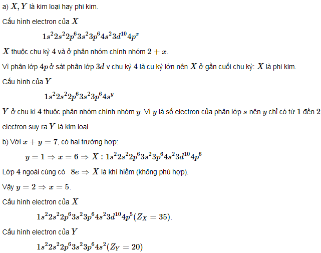 Nguyên tử của 2 nguyên tố X,Y lần lượt có phân lớp electron ngoài cùng là 4px và 4sy.
