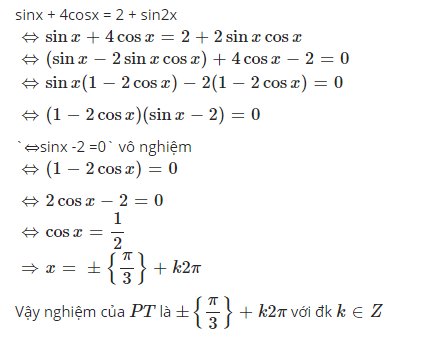 Nghiệm của phương trình sin2x - 4sinx + 3 = 0 là :