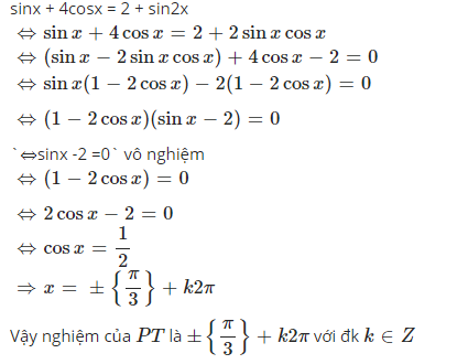 Nghiệm của phương trình sin2x - 4sinx + 3 = 0 là :