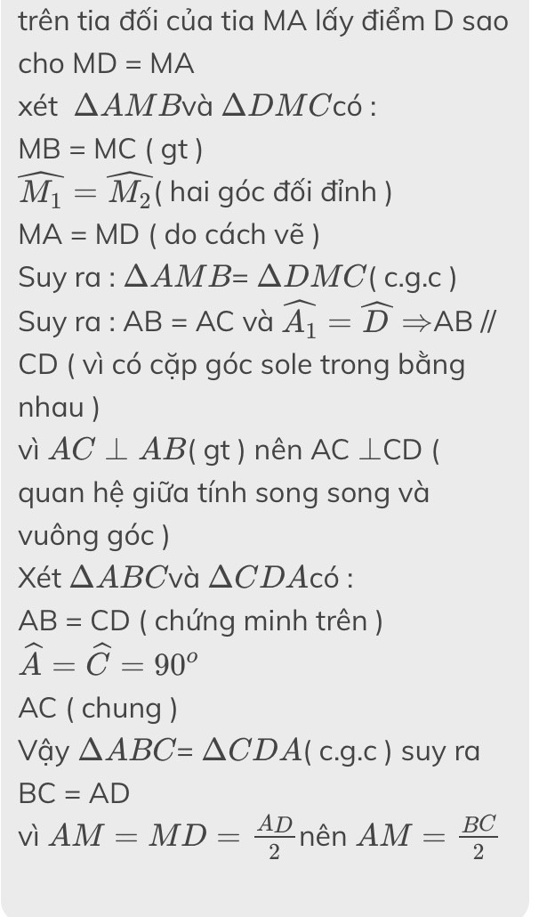 Chứng minh: Trong một tam giác vuông. Đường trung tuyến ứng với cạnh huyền bằng một nửa cạnh huyền.