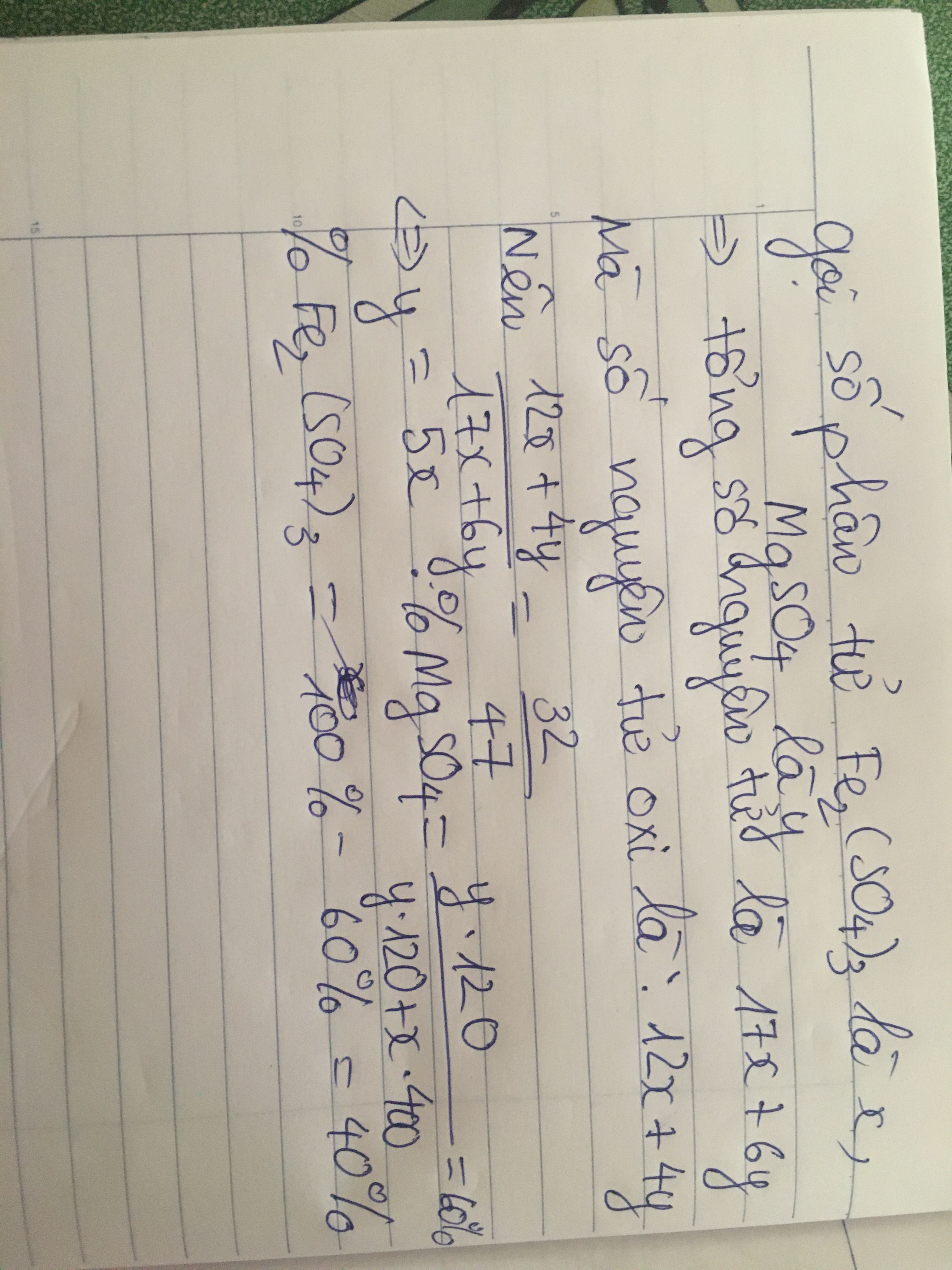 Một hỗn hợp gồm Fe2(SO4)3 và MgSO4, trong đó số nguyên tử oxi chiếm 32/47 tổng