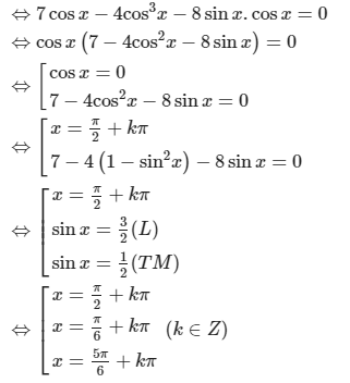 \Leftrightarrow 7\cos x - 4co{s^3}x - 4sin2x = 0