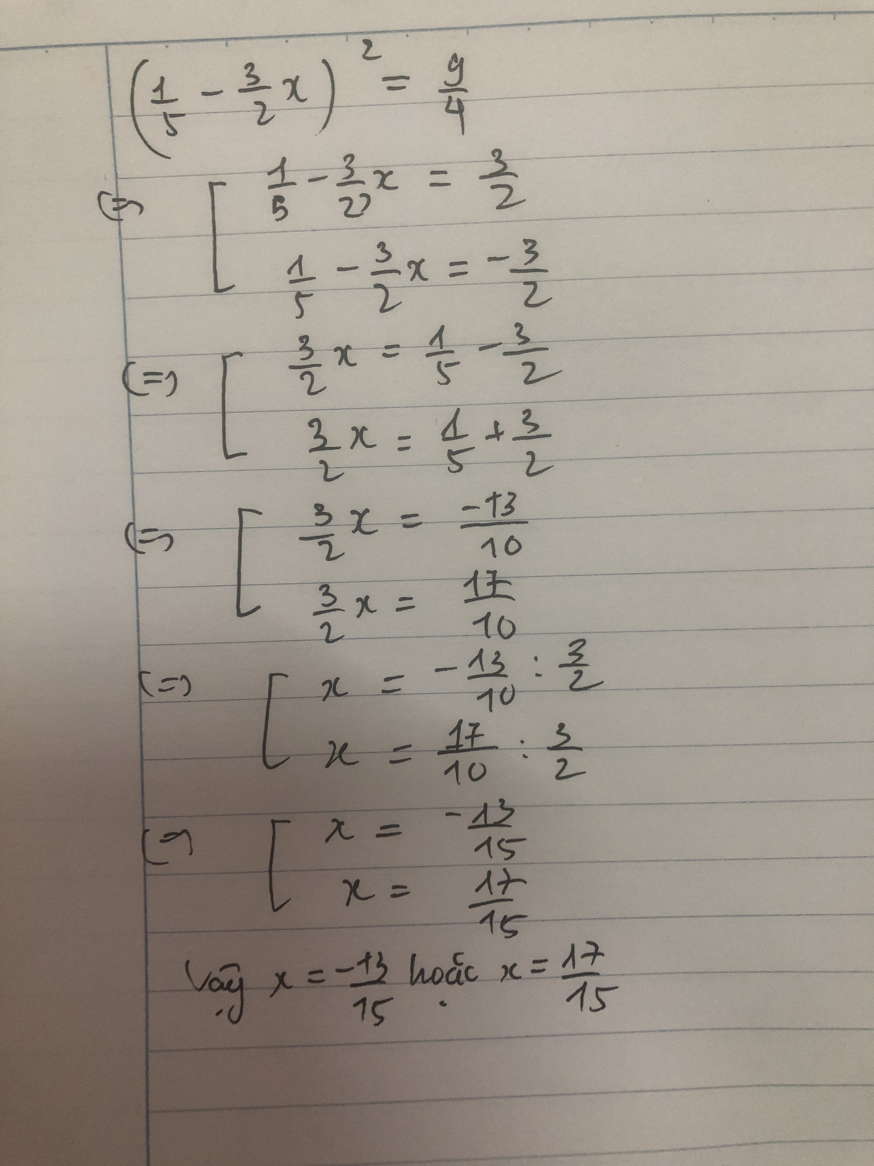 (1/5 - 3/2 x) mũ 2 = 9/4