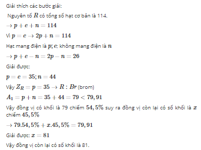 b,Nguyên tố R có 2 đồng vị bền trong tự nhiên có NTK trung bình là 79,91 và thành phần % số nguyên tử của đồng vị có số khối nhỏ (79) là 54,5%.Xác định số khối của đồng vị thứ 2