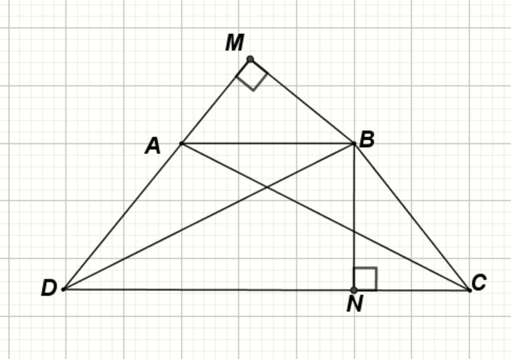 b) ABCD laˋ hıˋnh thang caˆn\boxed{ABCD \text{ là hình thang cân}}ABCD laˋ hıˋnh thang caˆn