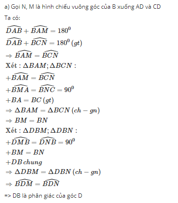 a) DB laˋ tia phaˆn giaˊc của ∠D\boxed{DB \text{ là tia phân giác của } \angle D}DB laˋ tia phaˆn giaˊc của ∠D