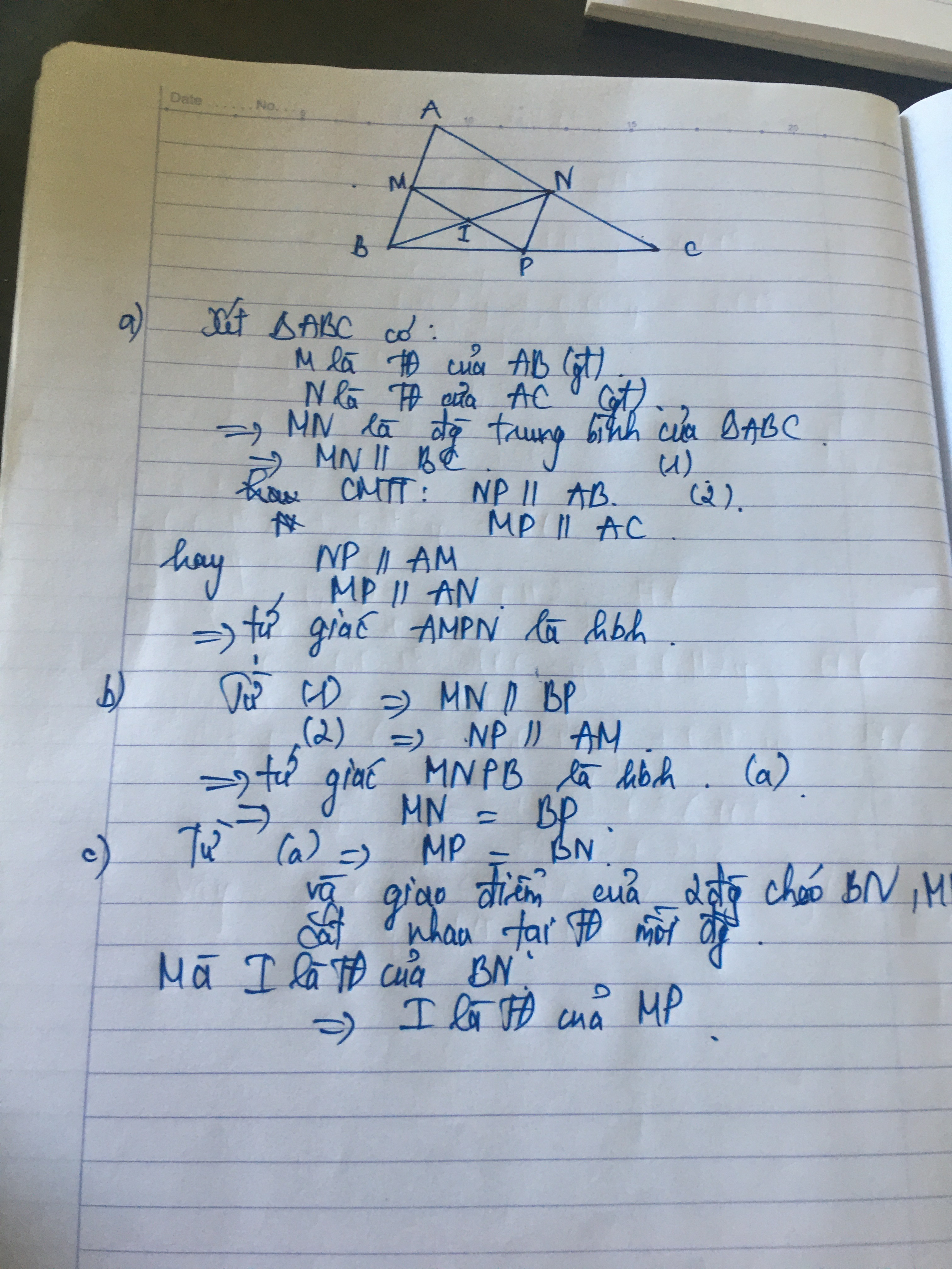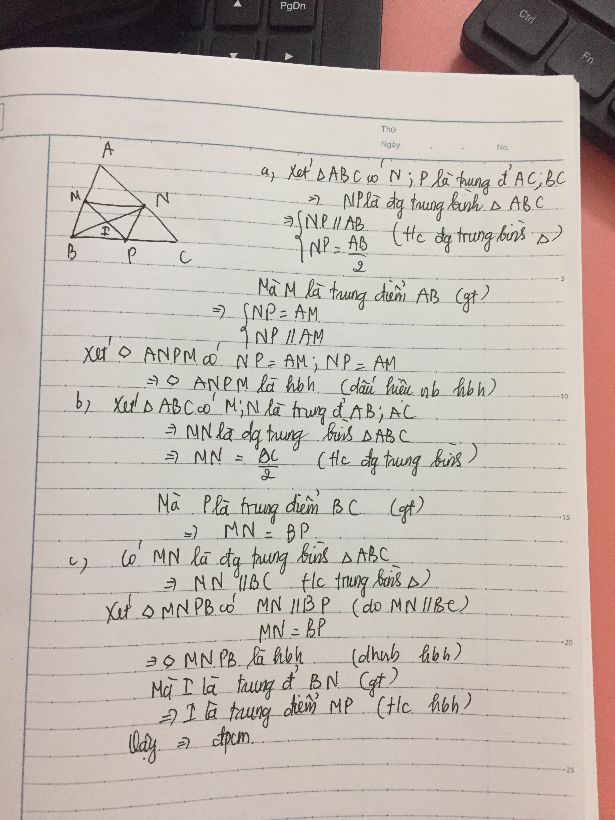 c. Gọi I là trung điểm của BN. Chứng minh I là trung điểm của MP.