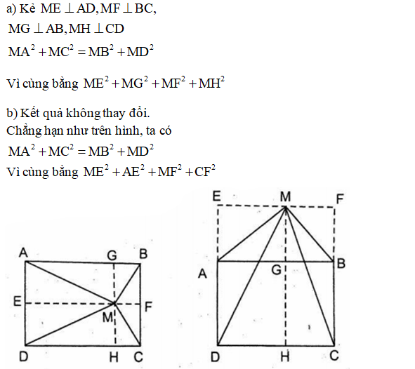 b) Kết quả trên có thay đổi không nếu điểm M nằm ngoài hình chữ nhật?
