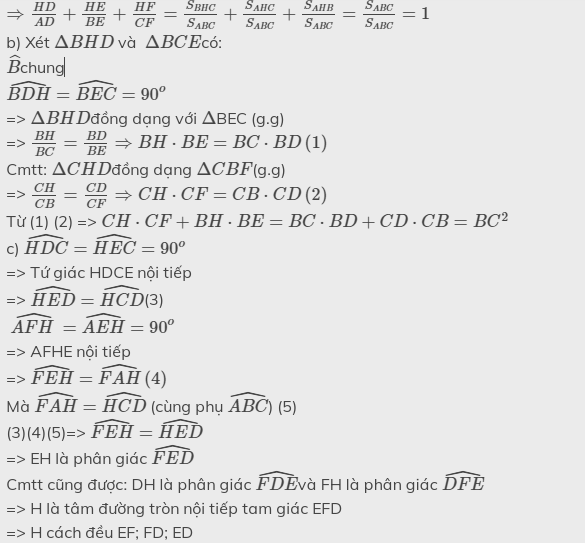 a) tính tổng HD/AD +HE/BE +HF/CF