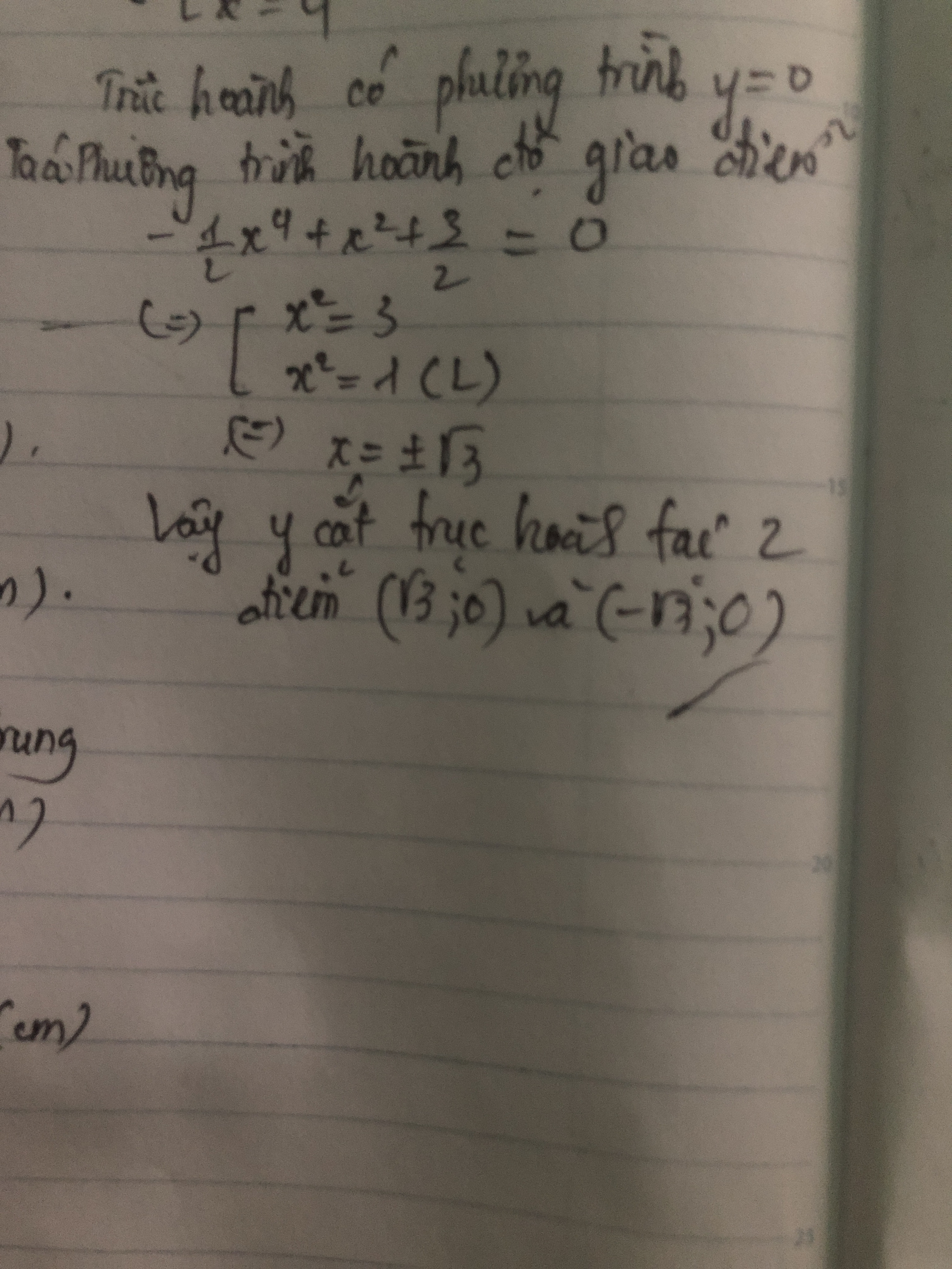 Đồ thị hàm số y= cắt trục hoành tại mấy điểm?