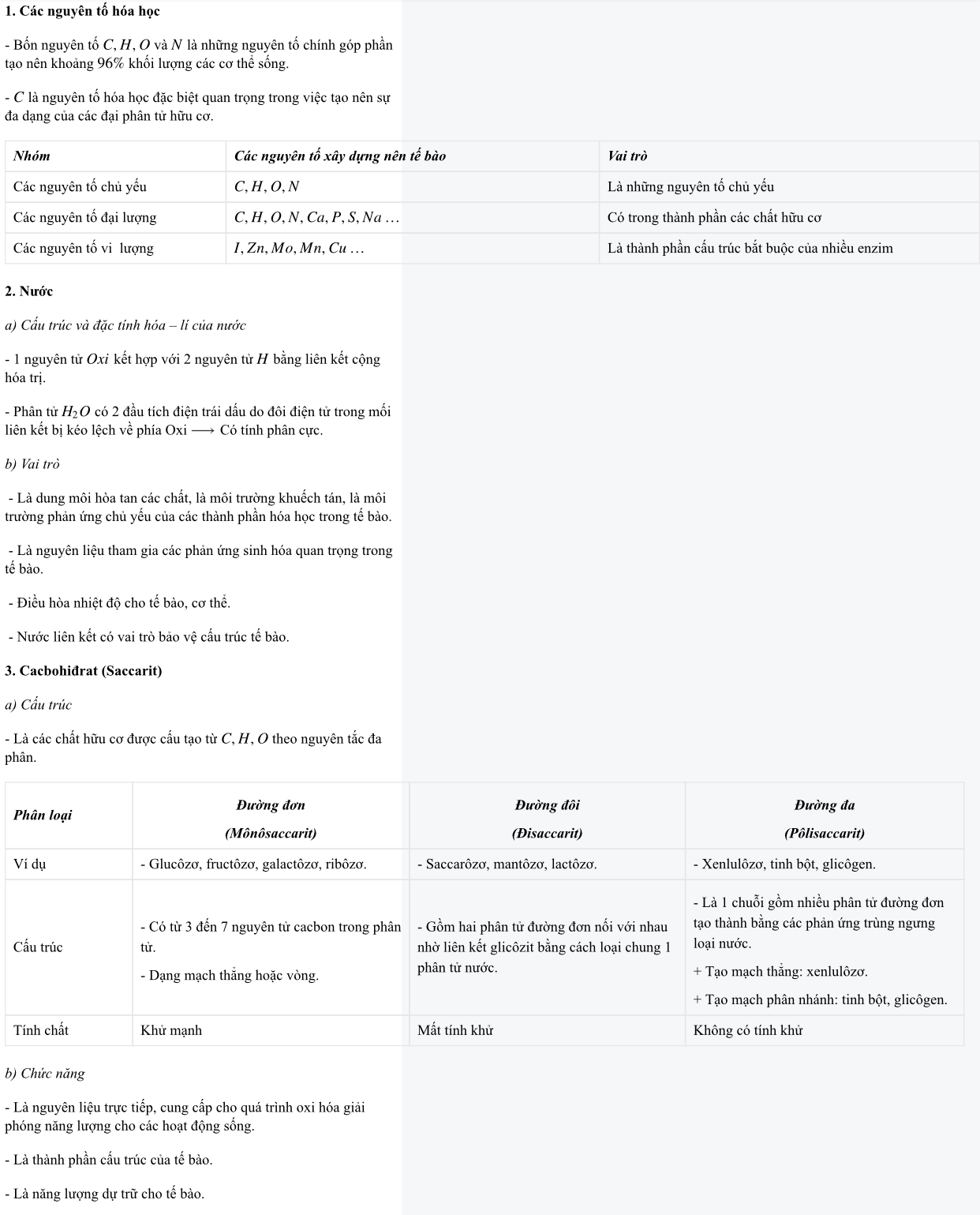 Carbohydrat cấu tạo nên hầu hết các vật chất hữu cơ trên Trái Đất do các vai trò bao quát của chúng trong tất cả các dạng sống. Đầu tiên là tồn tại ở dạng dự trữ năng lượng, nhiên liệu và chất trao đổi trung gian. Thứ 2, các loại đường ribose và deoxyribose tạo thành một phần trong cấu trúc của RNA và DNA. Thứ 3, polysacarit là các thành phần cấu trúc của thành tế bào vi khuẩn và thực vật. Thực ra, cellulose là thành phần chính của thành tế bào thực vật và là một trong những hợp chất hữu cơ phổ biến nhất trong sinh quyển. Thứ 4, carbohydrat có quan hệ với một số protein và lipid, các chất này có vai trò quan trọng trong việc tương tác gián tiếp giữa các tế bào và sự tương tác giữa các tế bào với các thành phần khác trong môi trường của tế bào.