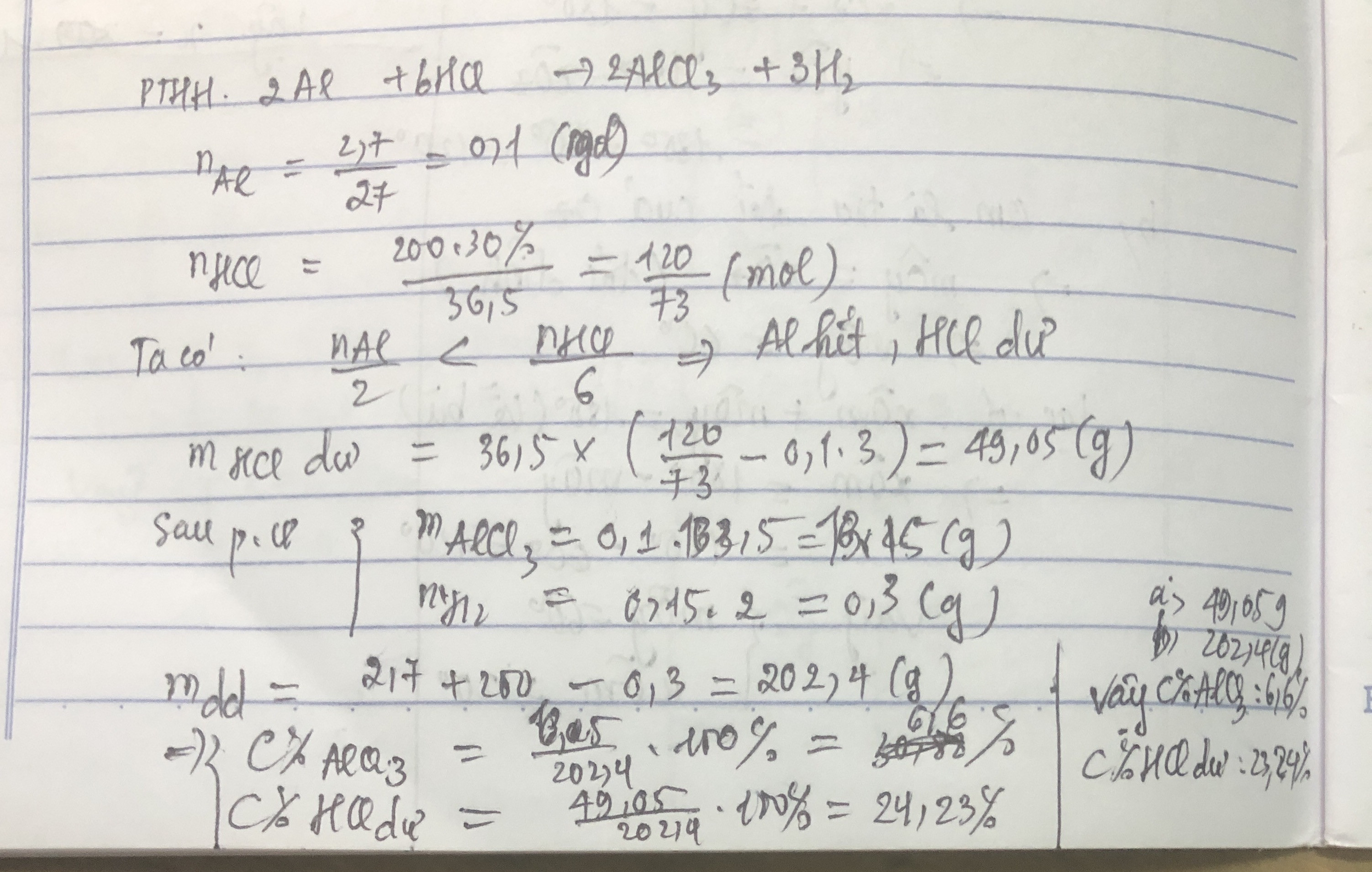 vậy: a, HCl dư 49,05g