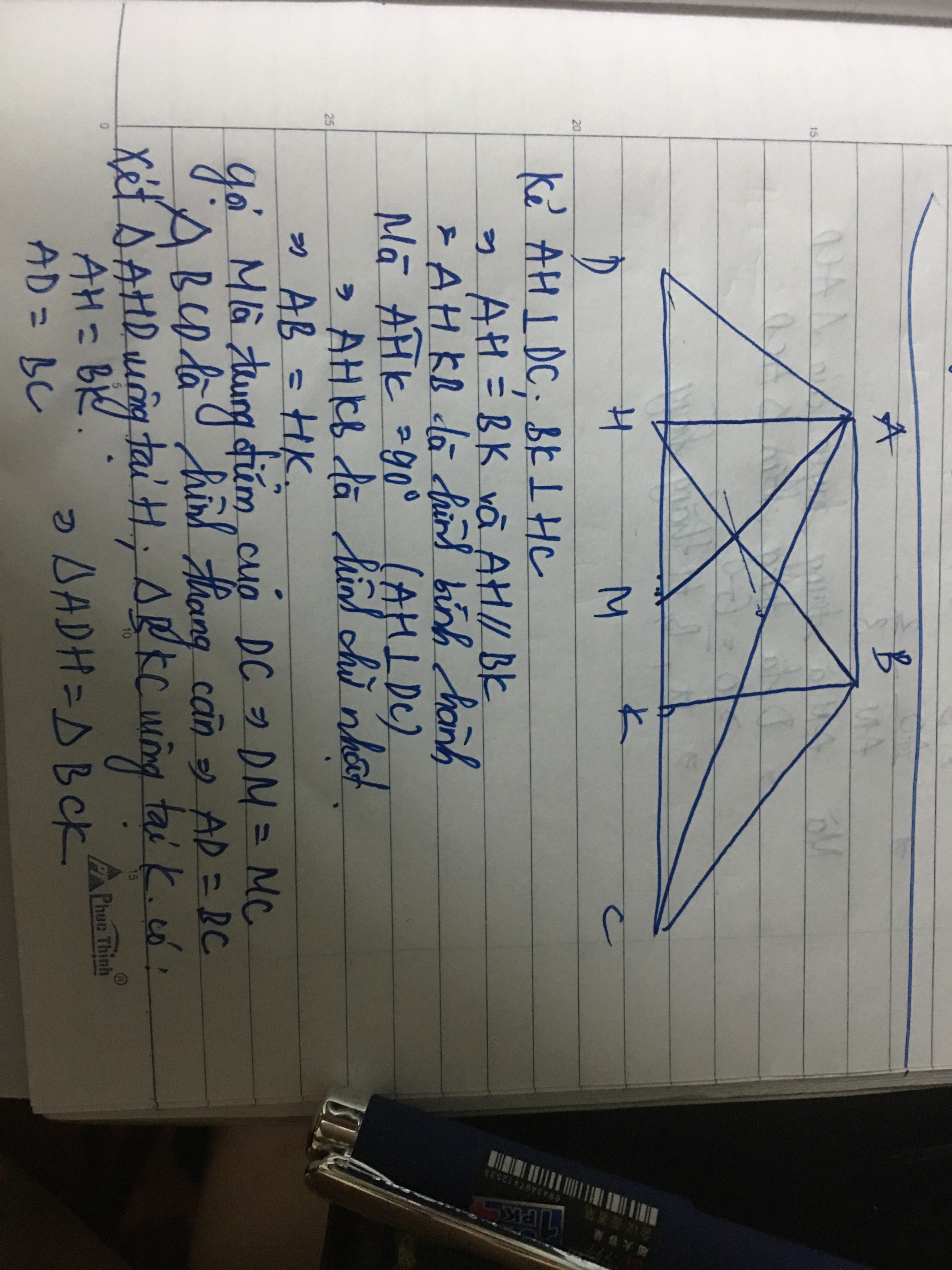 Cho hình thang cân ABCD có (AB//CD, AB<CD) , kẻ AH vuông góc với CD, gọi G là trọng
