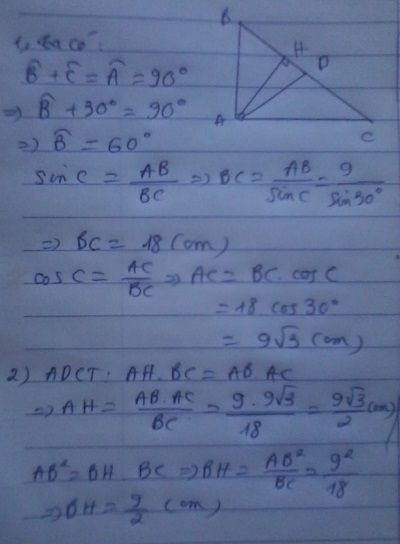 Bài 16: Cho AABC vuông tại A có AB = 9cm; C = 30°