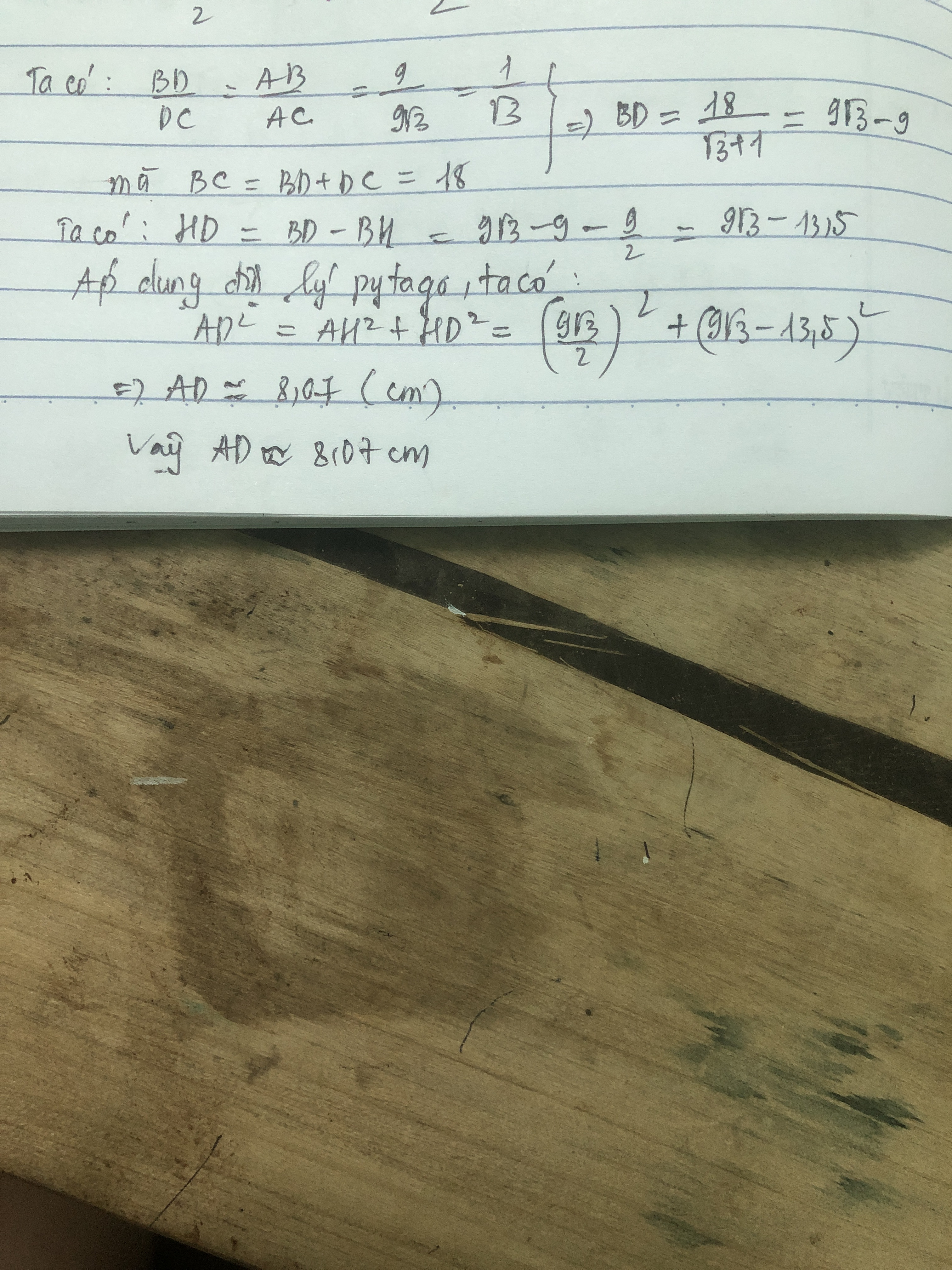 c) Tính độ dài đường phân giác AD của tam giác ABC