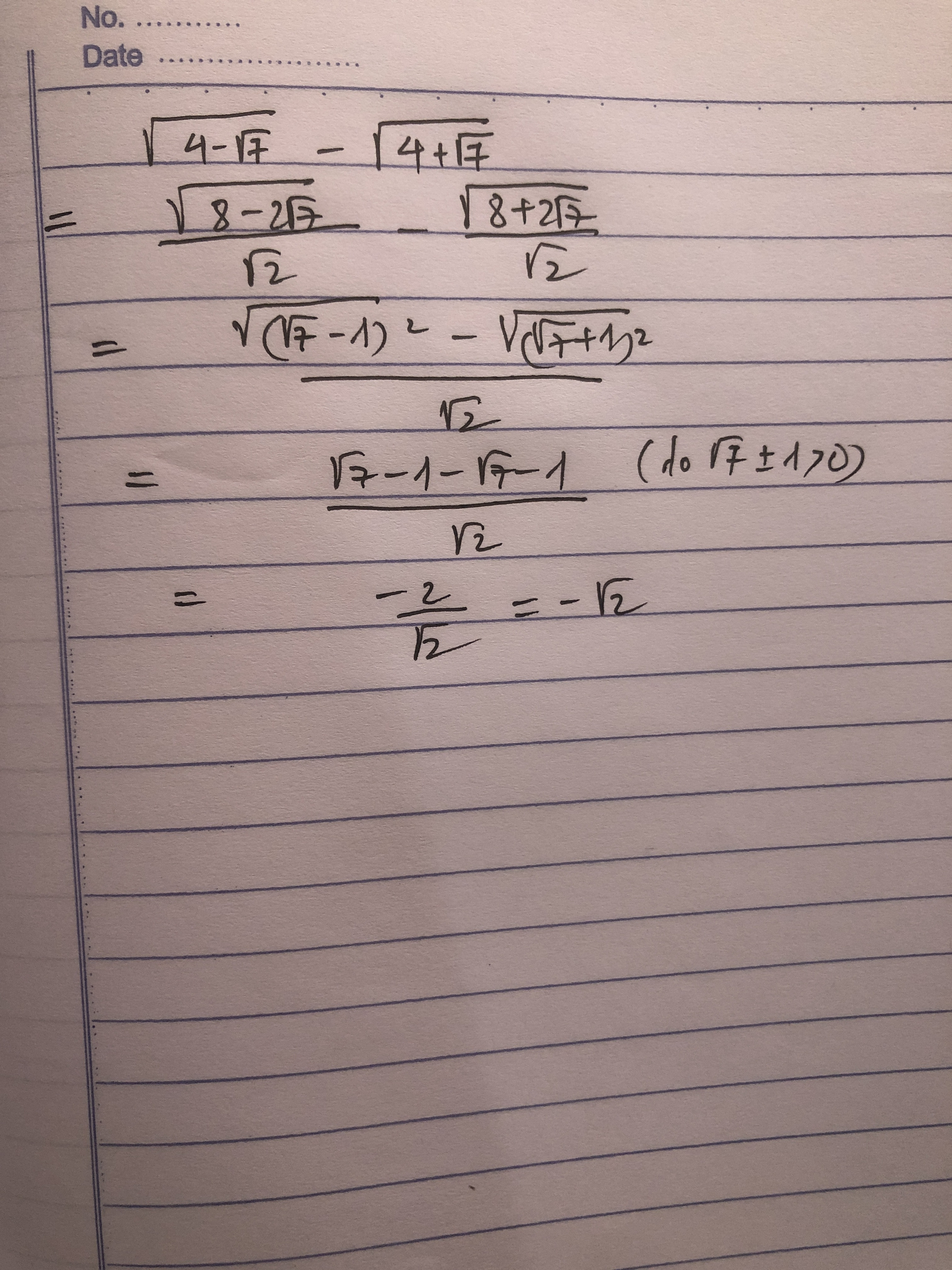 Căn ( 4- căn 7) - căn (4 + căn 7)