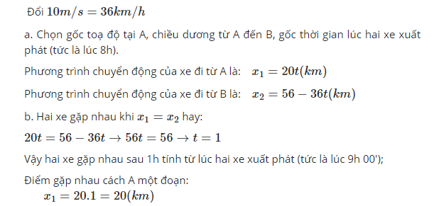Vậy: b, t=1h và cách A 20km
