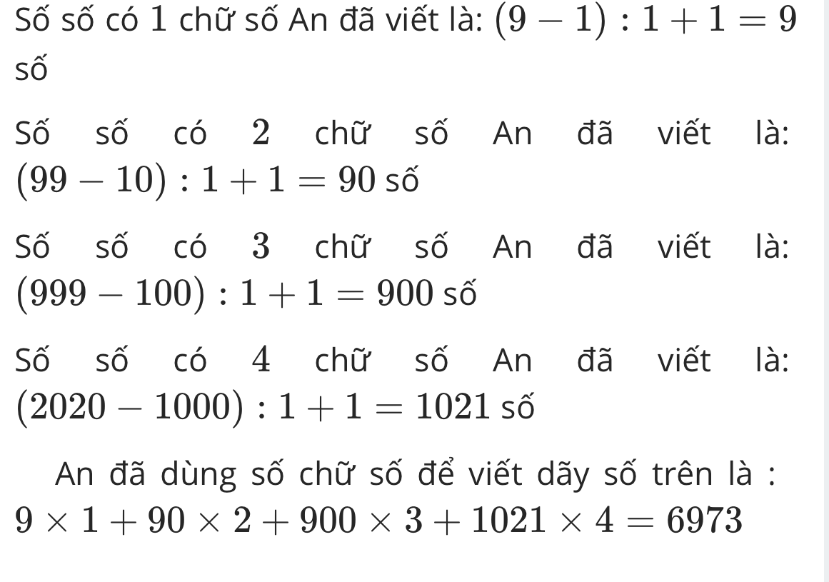 Bạn an viết dãy số 1 ;2;3;4;5;6;7;8;9;10;11;12.....2019;2020 hỏi bạn an đã dùng bn chữ số tự nhiên để viết đc dãy số trên