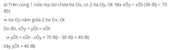a) Tính góc yOt . tia Oy có là phân giác của góc xOt hay không ? Vì sao ?