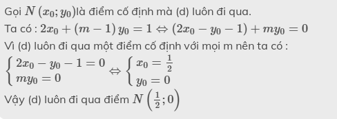 Chứng minh rằng khi m thay đổi, các đường thẳng 2x + (m – 1)y = 1 luôn luôn đi qua một điểm