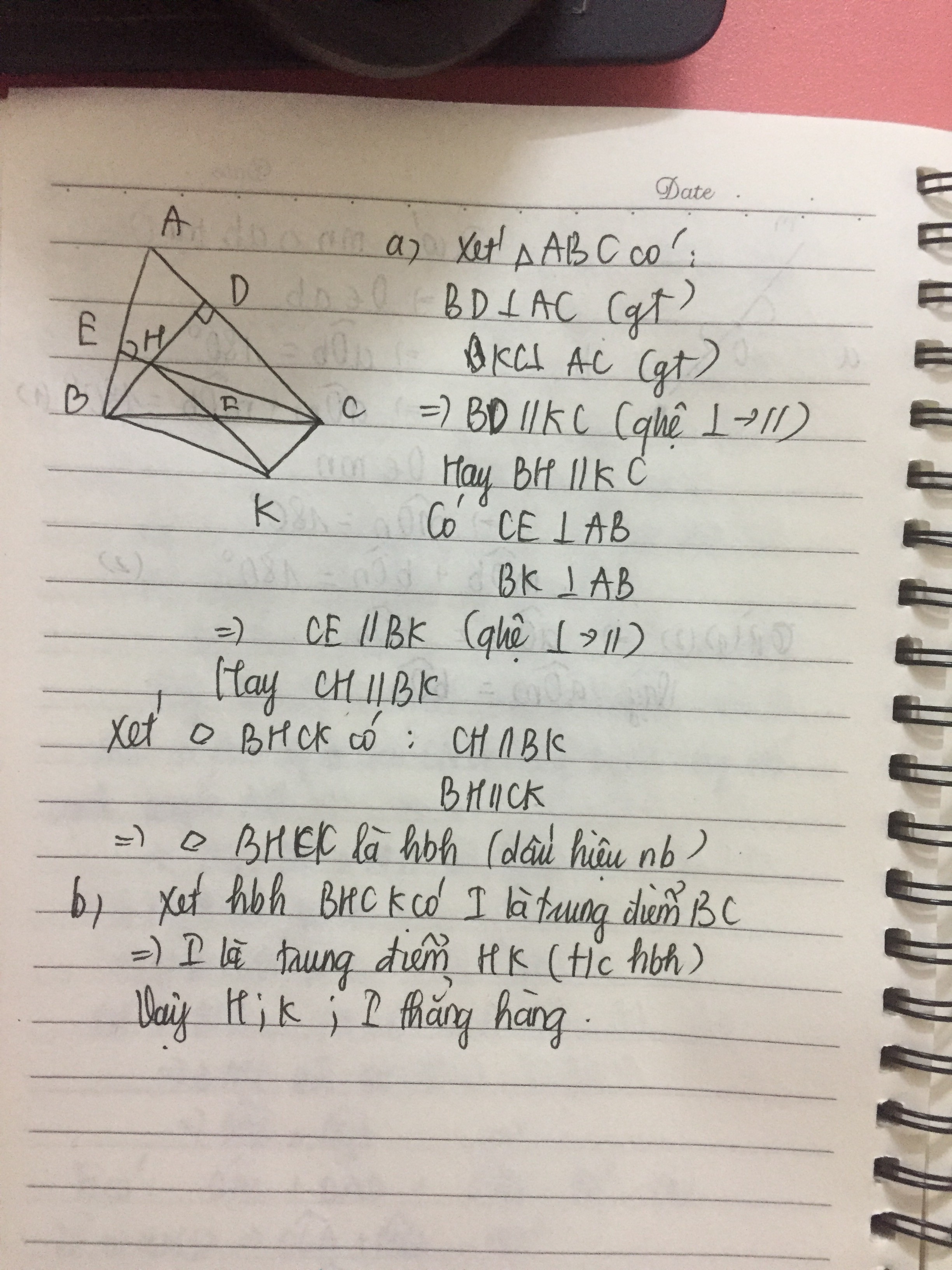 b. Gọi I là trung điểm của BC. Chứng minh H, I ,K thẳng hàng.