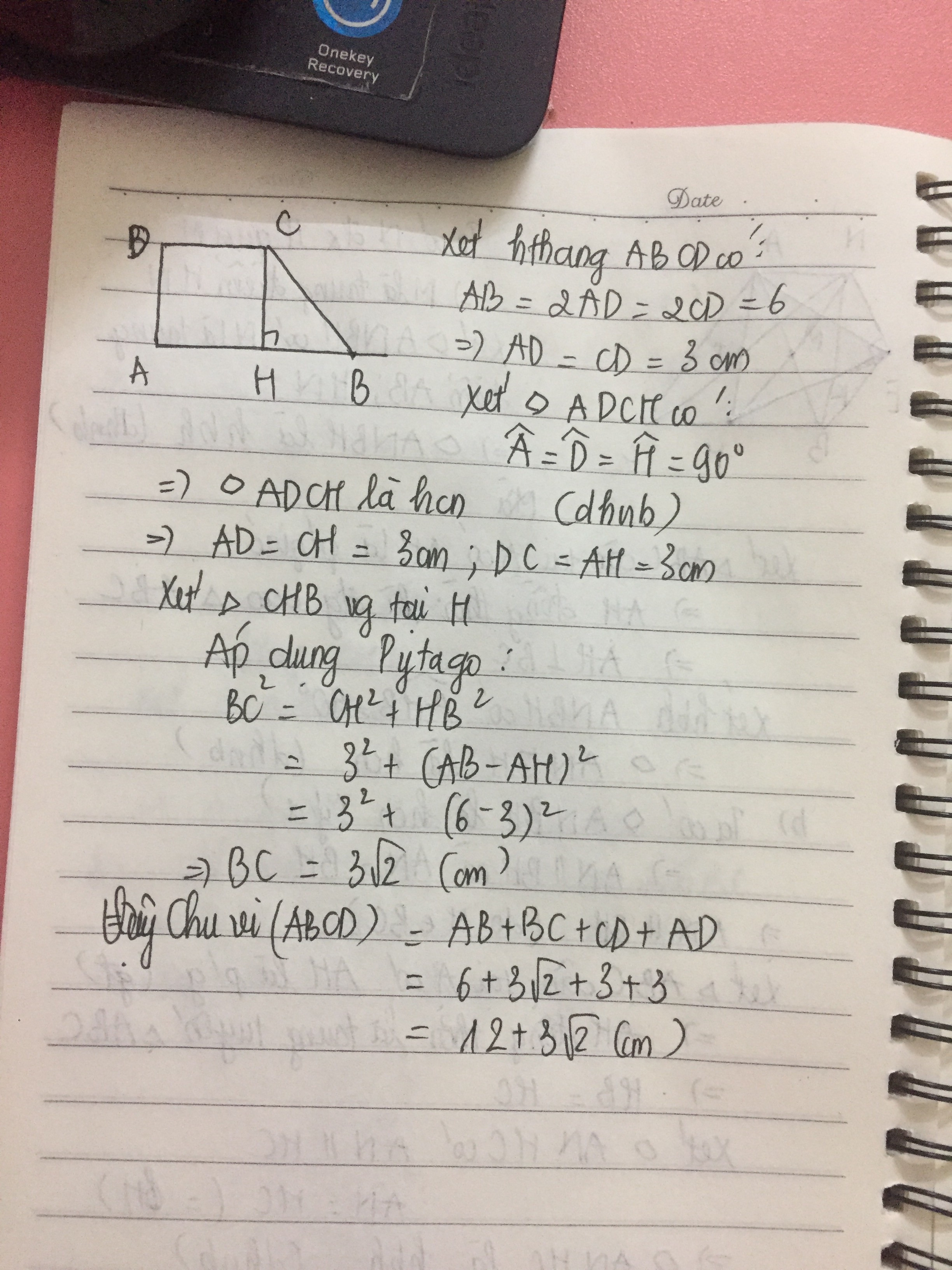 Tính chu vi hình thang nếu AB = 6 cm.