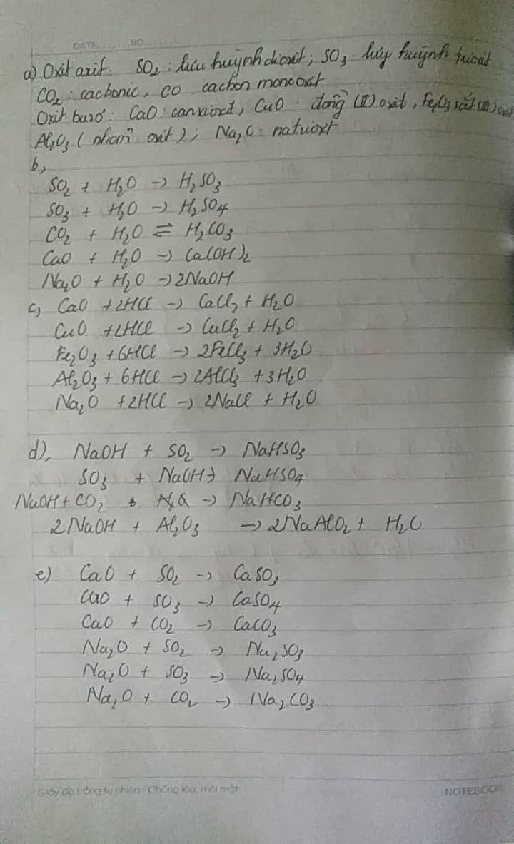 e, Cặp Oxit nào tác dụng với nhau ?Viết phương trình?