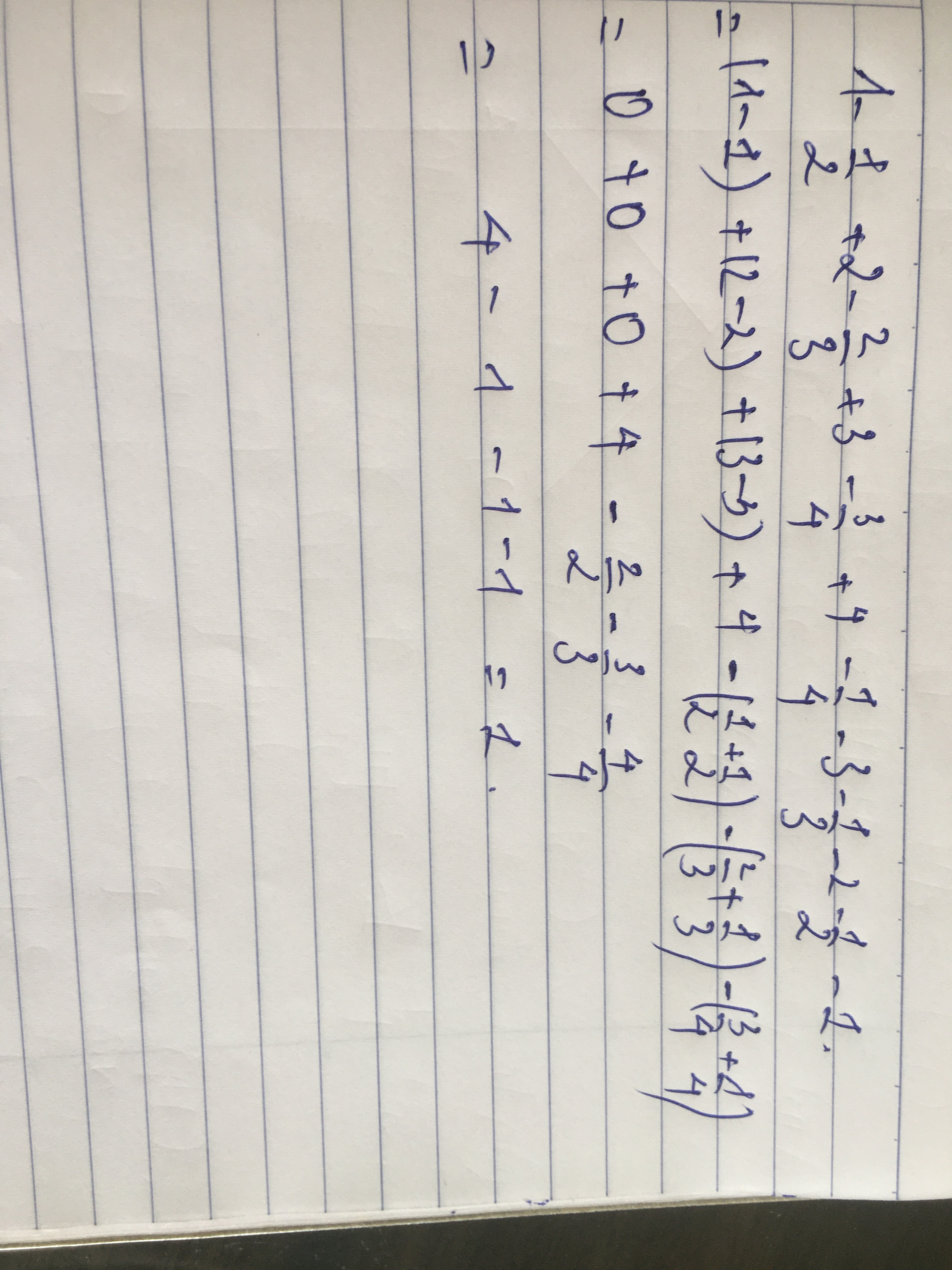 1-1/2+2-2/3+3-3/4+4-1/4-3-1/3-2-1/2-1 .Tính nhanh