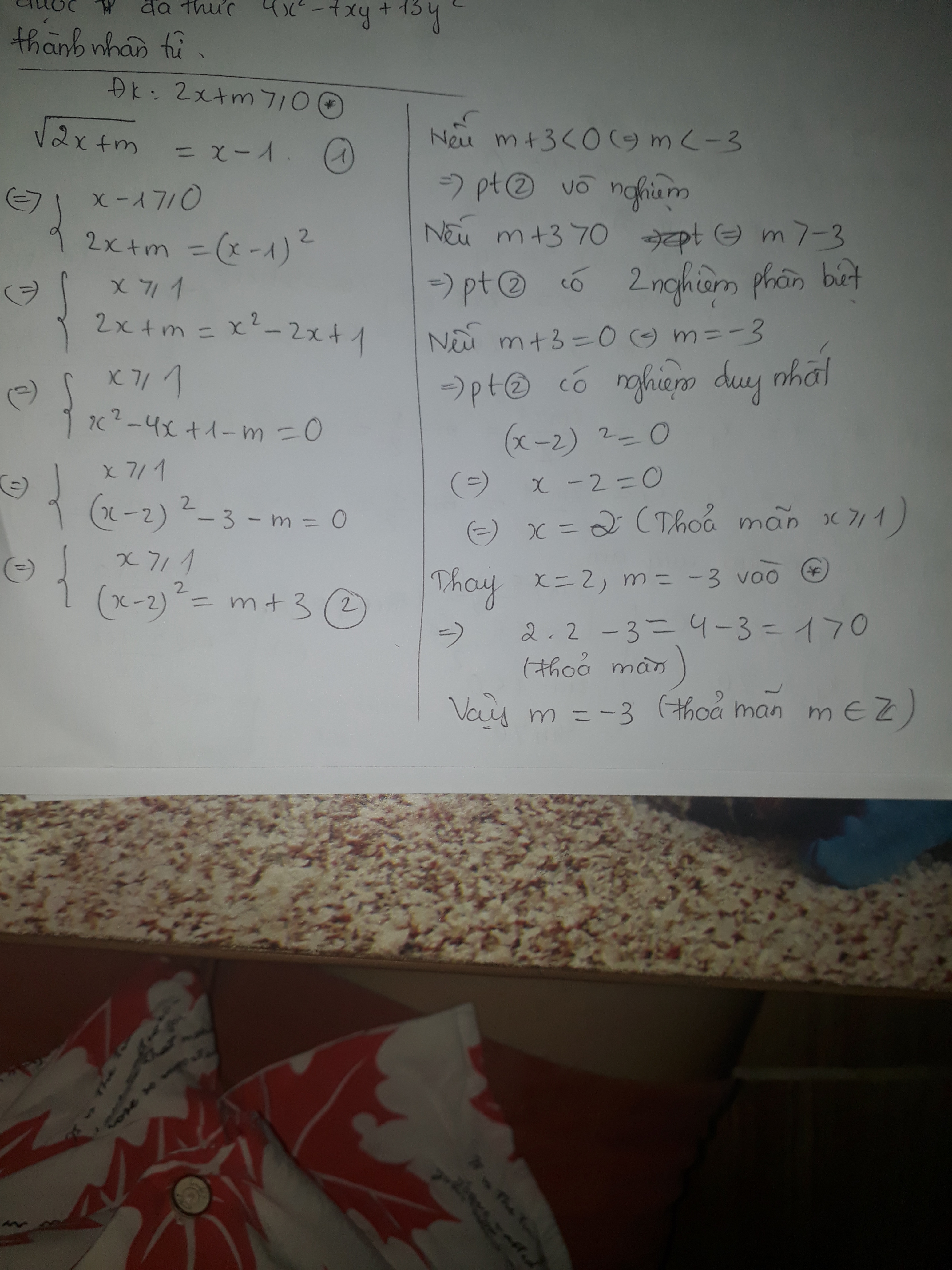 Tìm mz để phương trình =x-1 có nghiệm duy nhất