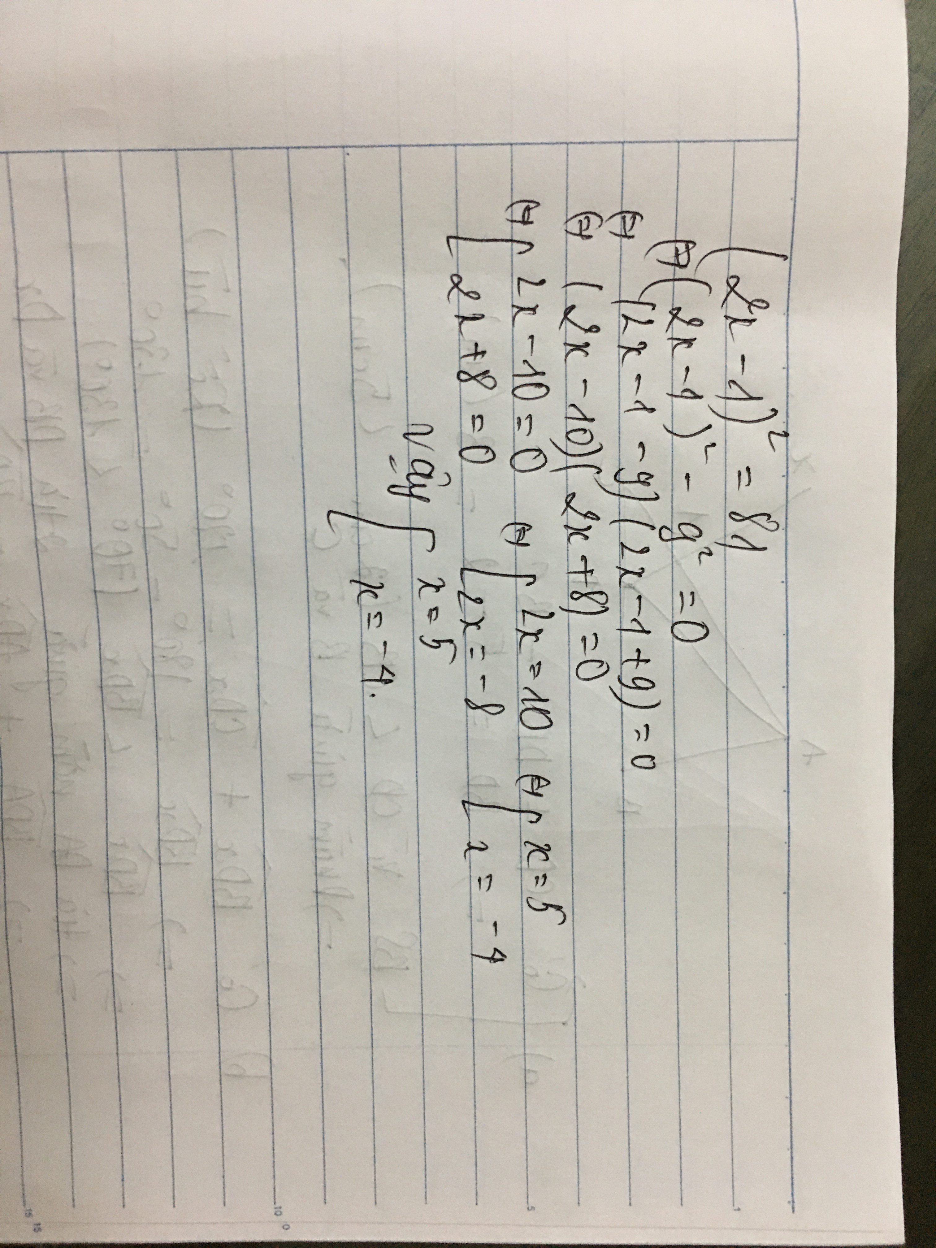 Bài tìm x: (2x-1)^2=81