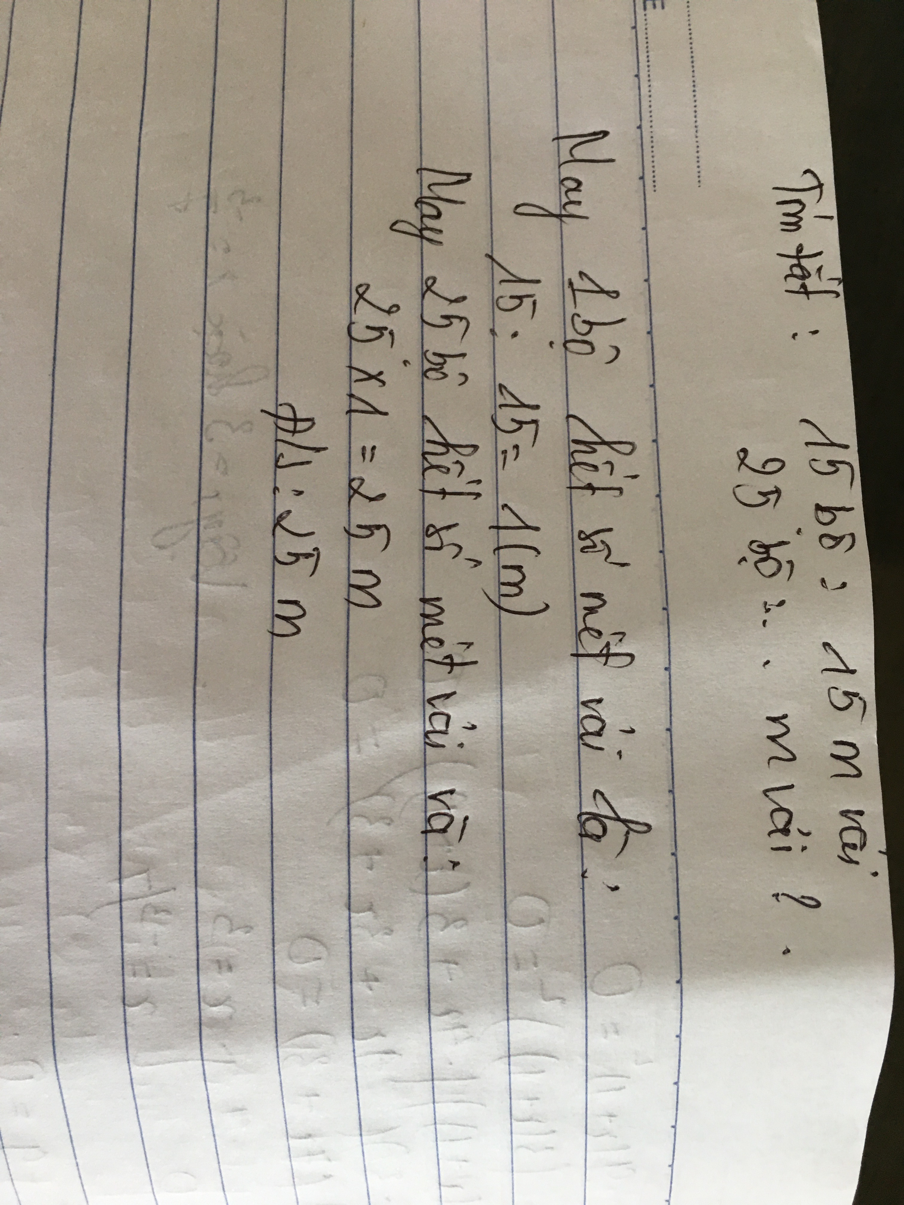May 15 bộ như nhau hết 15 m vải .hỏi may 25 bộ như thế cần bao nhiêu mét vải cho em tóm tắt với ạ,em cảm ơn