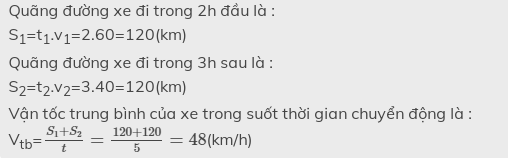 Bài 1: Một xe chạy trong 5 giờ. Hai giờ đầu chạy với vận tốc là 60 km/h; 3 giờ sau với vận tốc 40 km/h. Tính