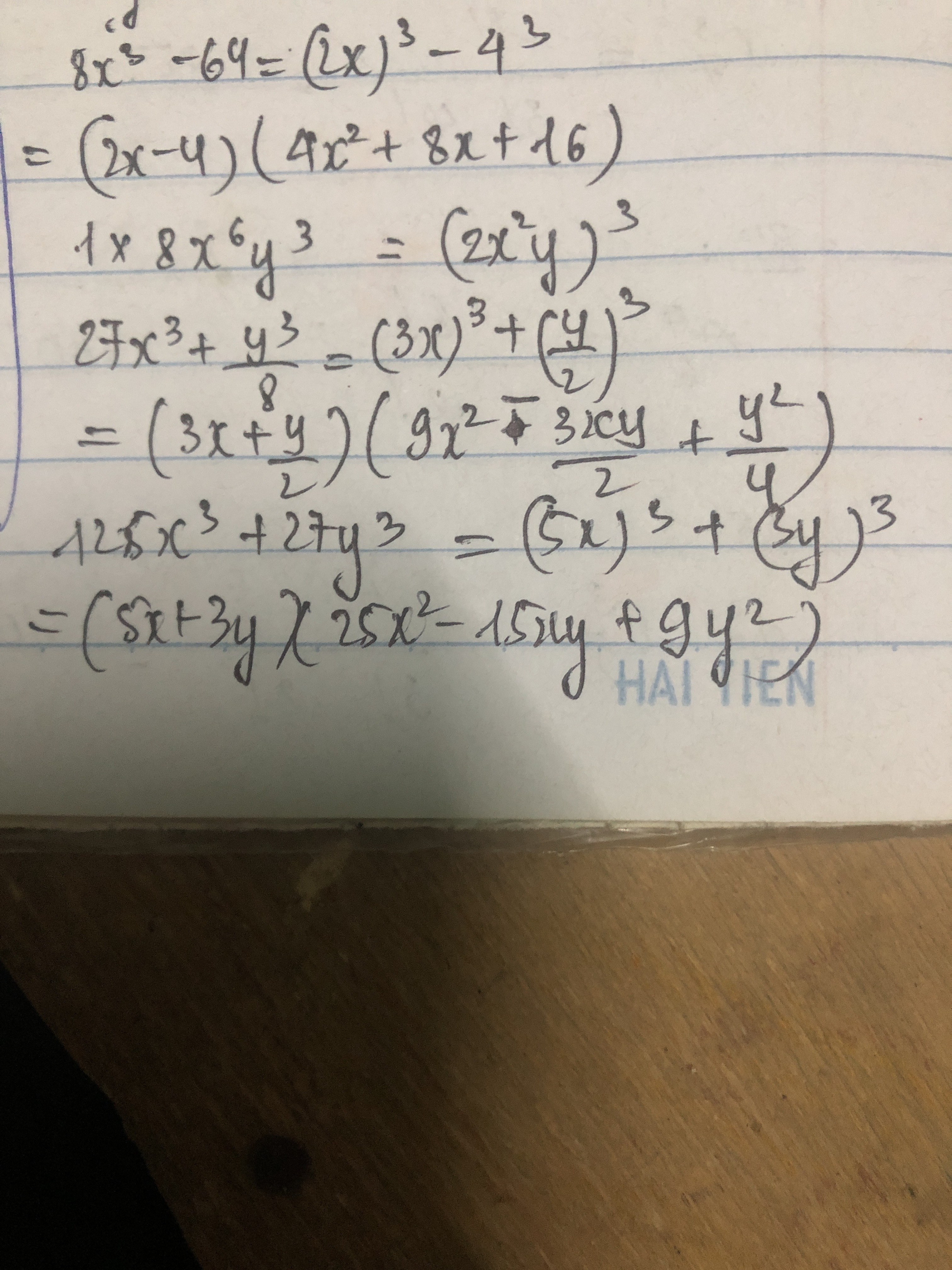 Phân tích đa thức thành nhân tử a)8x³-64 b)1×8x⁶y³ c)27x³+y³/8 d)125x³+27y³