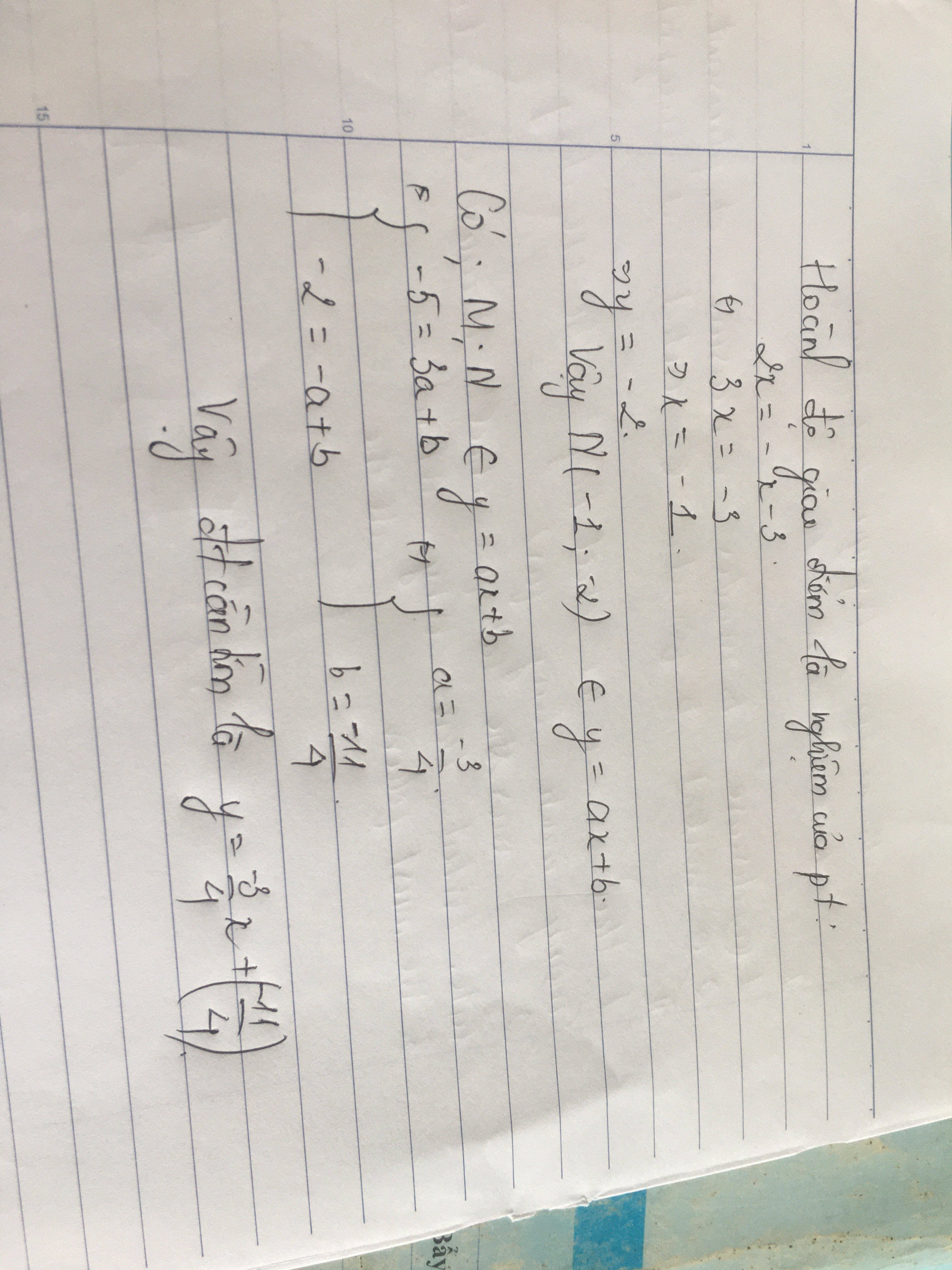 đi qua M(3;-5) và N là giao điểm của 2 đường thằng d1: y=2x và đường thẳng d2: y=-x-3